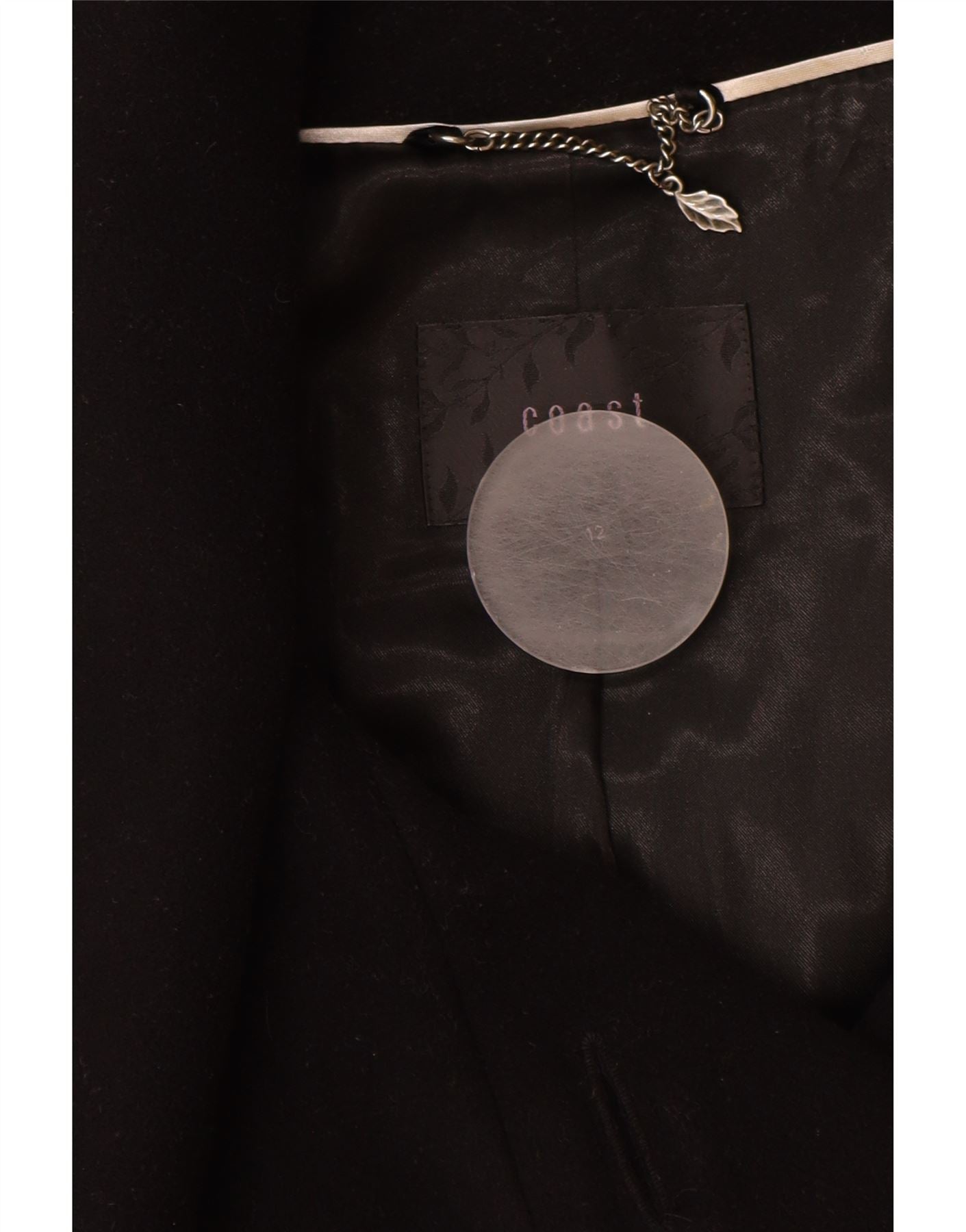 - AI Description: This Coast womens double-breasted coat is crafted from a sophisticated black blended fabric, offering a smooth, refined texture. It features a wide collared neckline and a classic double-breasted button closure. Long sleeves provide elegant coverage. The regular fit is enhanced by a matching belted waist, creating a flattering silhouette. Tonal buttons add a subtle, cohesive detail. The coat is fully lined for comfort and a premium finish, embodying a timeless, classic style.