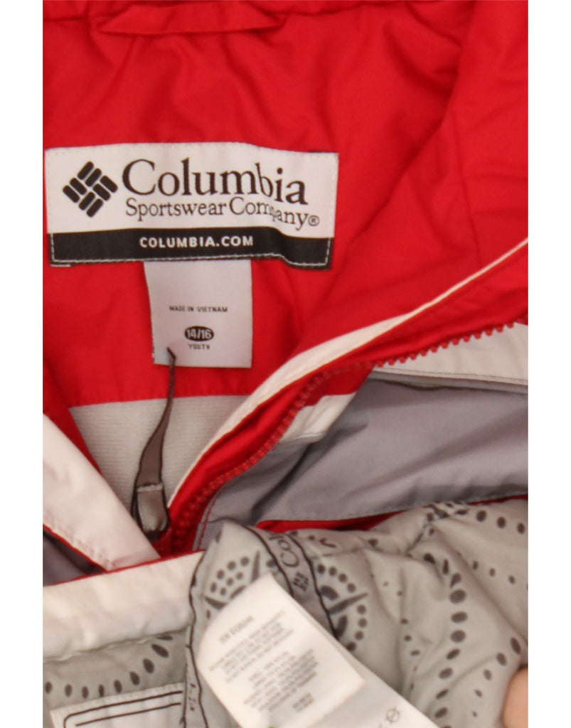 COLUMBIA Girls Hooded Padded Jacket 14-15 Years Red Colourblock Nylon
