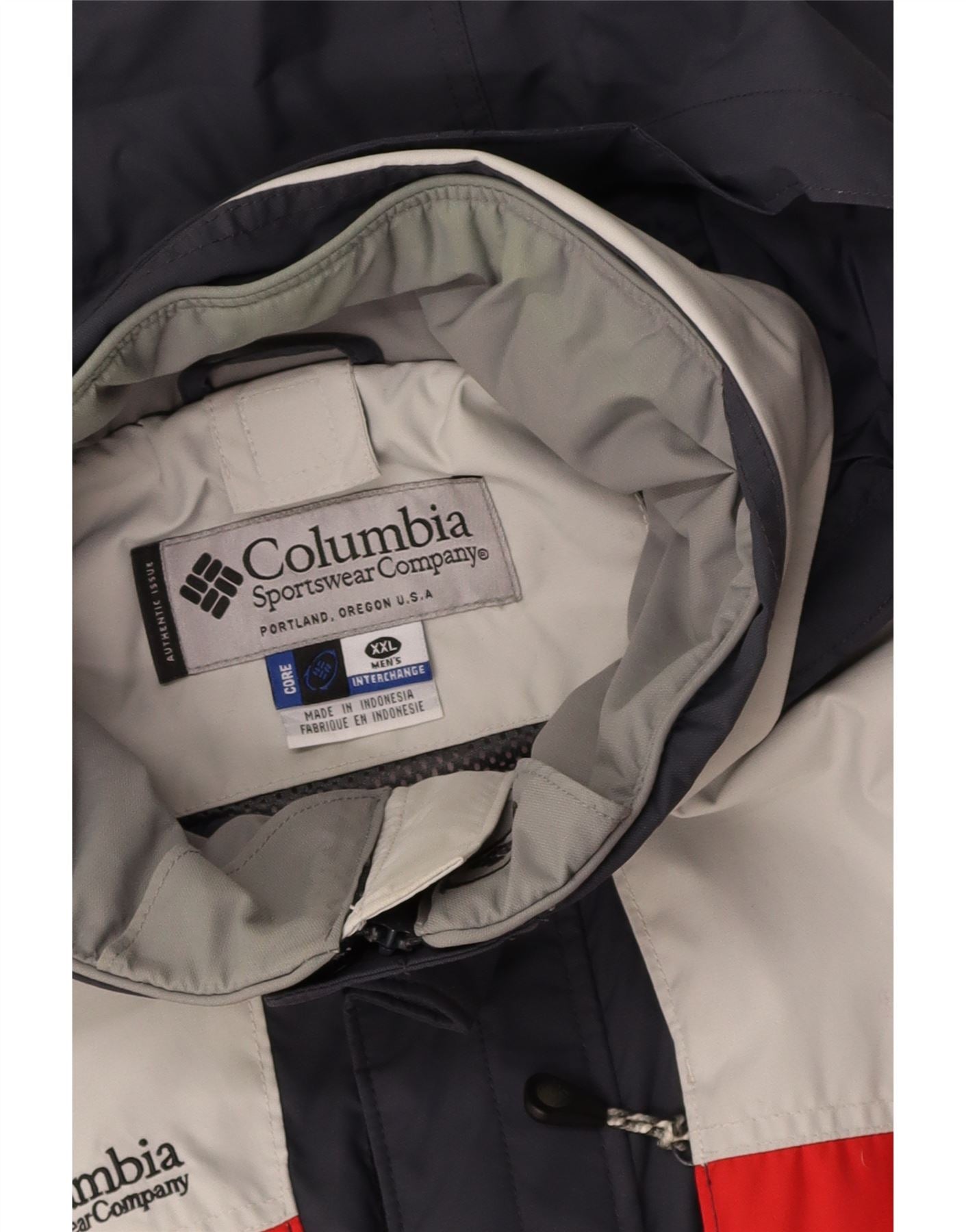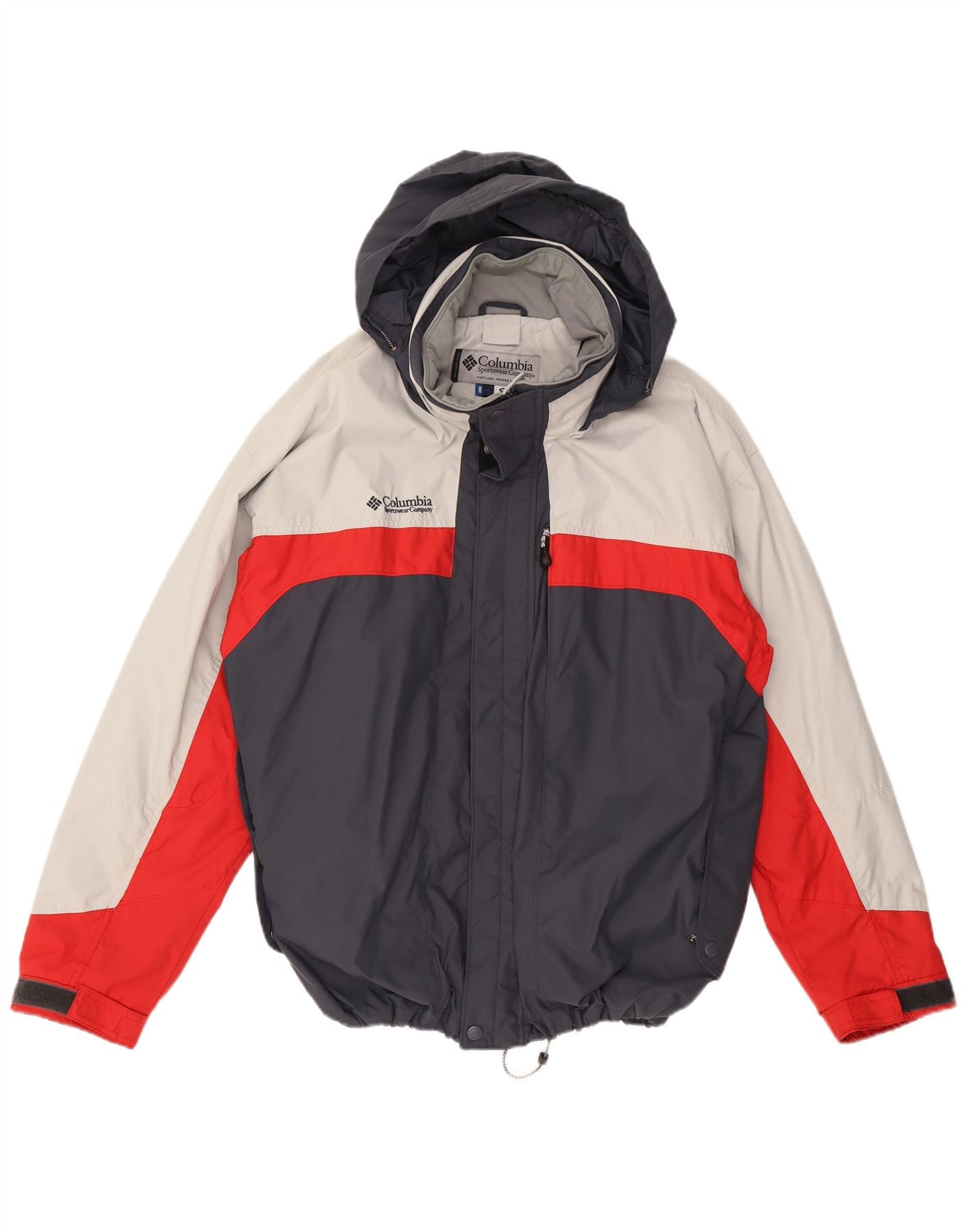 COLUMBIA Mens Graphic Hooded Windbreaker Jacket UK 44 2XL Grey Colourblock
