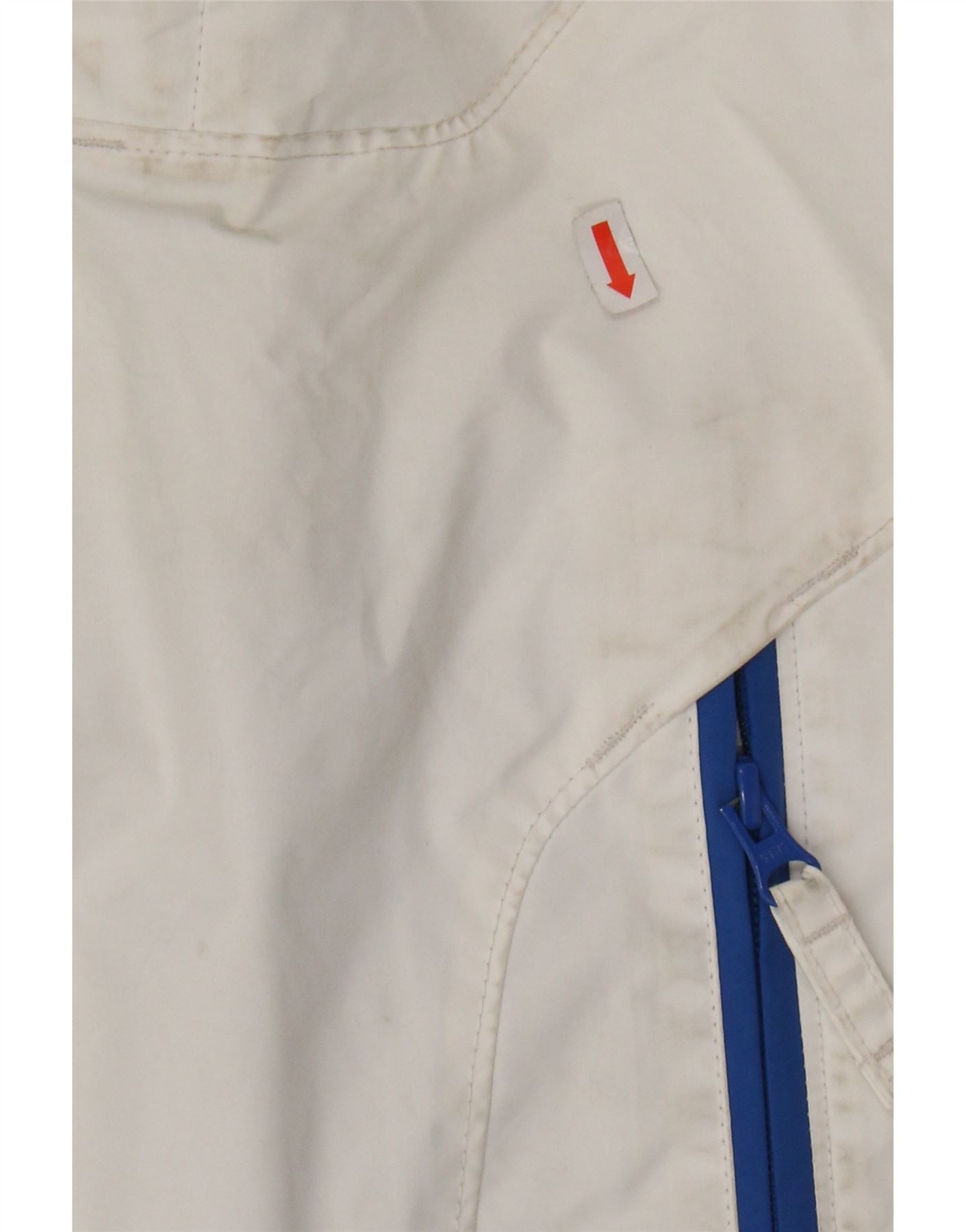 - Condition: Fair Used Condition: the item has been frequently worn and may have numerous flaws - Mark on back. Mark on front. Missing hood. Mark on hem.