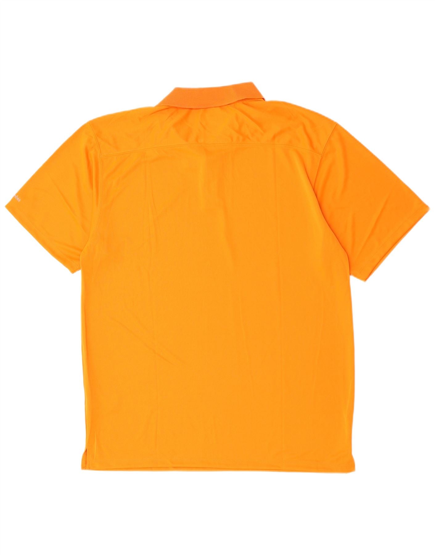 - AI Description: This Columbia mens polo T-shirt is crafted from lightweight, breathable orange jersey fabric. It features a classic collared neckline and a button-up placket. Short sleeves and a regular fit ensure comfort and ease of movement. A subtle logo accent adds a signature touch. The Omni-Shade technology provides sun protection, making it ideal for sports.
