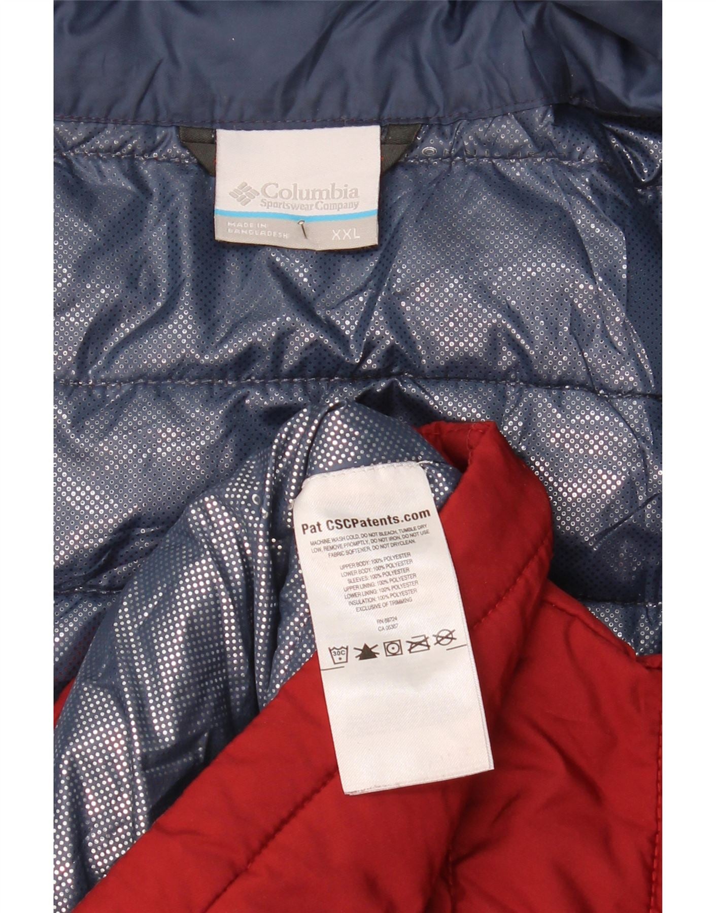 - AI Description: This Columbia mens padded jacket is crafted from 100 percent polyester, offering a lightweight yet thermal feel. Its vibrant red hue provides a bold look. A collared neckline and long sleeves ensure warmth. The full zip closure offers versatile wear. Zipped pockets provide practical storage. A subtle logo accent completes the regular fit design, perfect for winter.