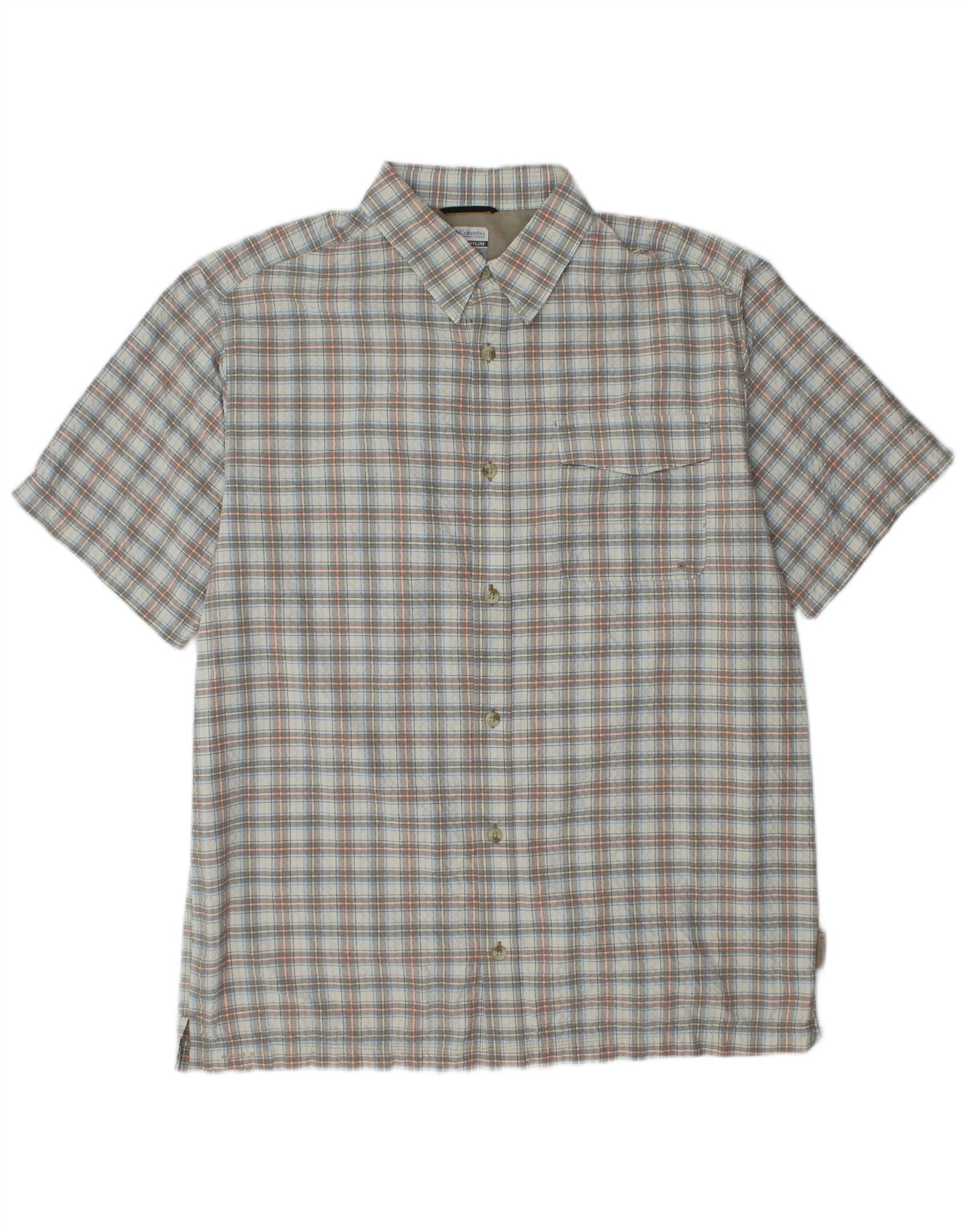 COLUMBIA Mens Titanium Short Sleeve Shirt XL Grey Check Nylon