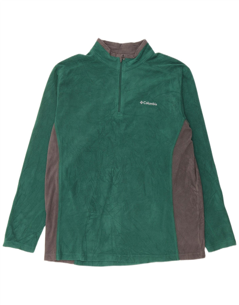 COLUMBIA Mens Zip Neck Fleece Jumper XL Green Colourblock Polyester
