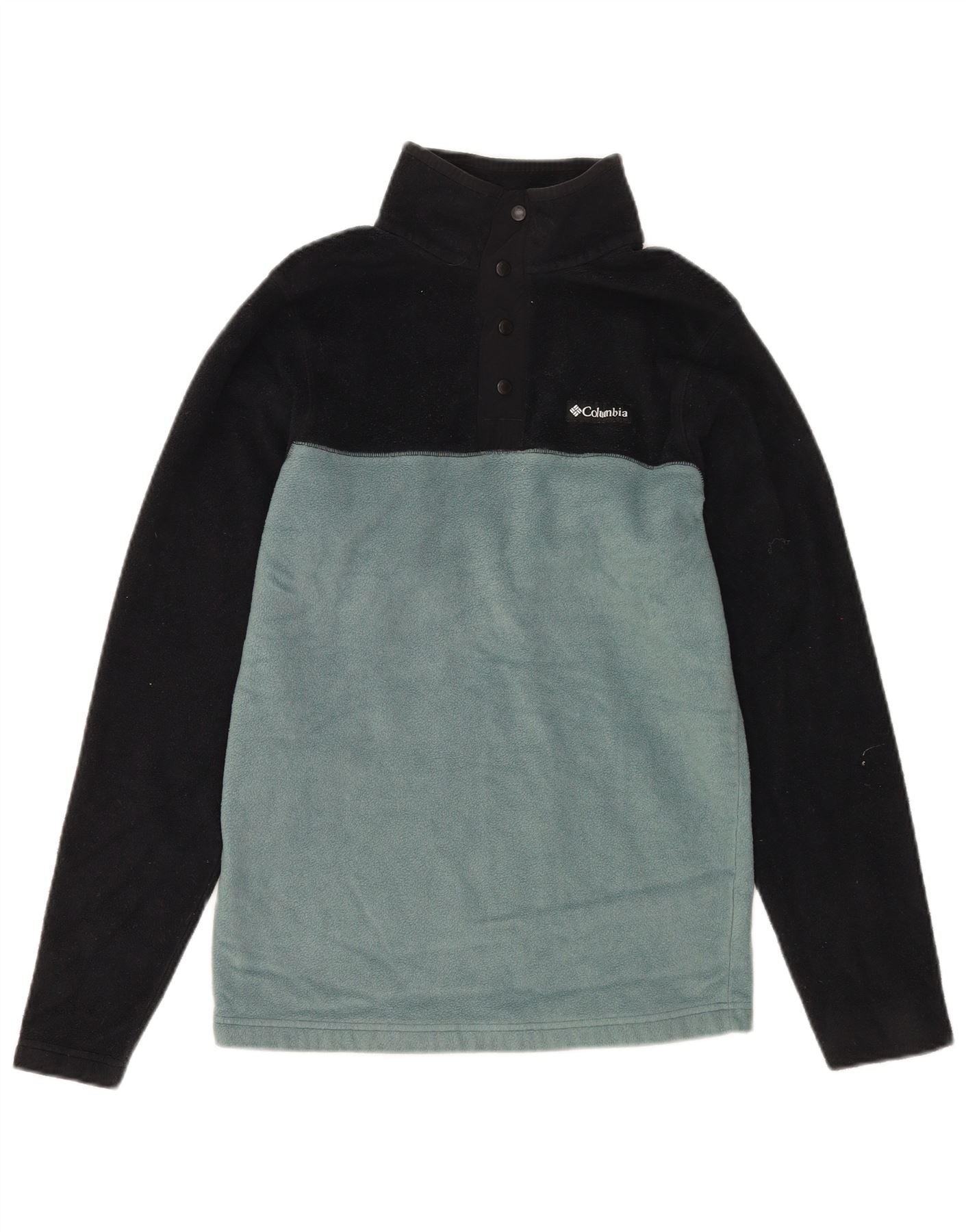 COLUMBIA Womens Button Neck Fleece Jumper UK 14 Large Black Colourblock
