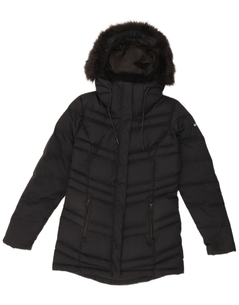 COLUMBIA Womens Hooded Padded Jacket UK 10 Small Black Nylon
