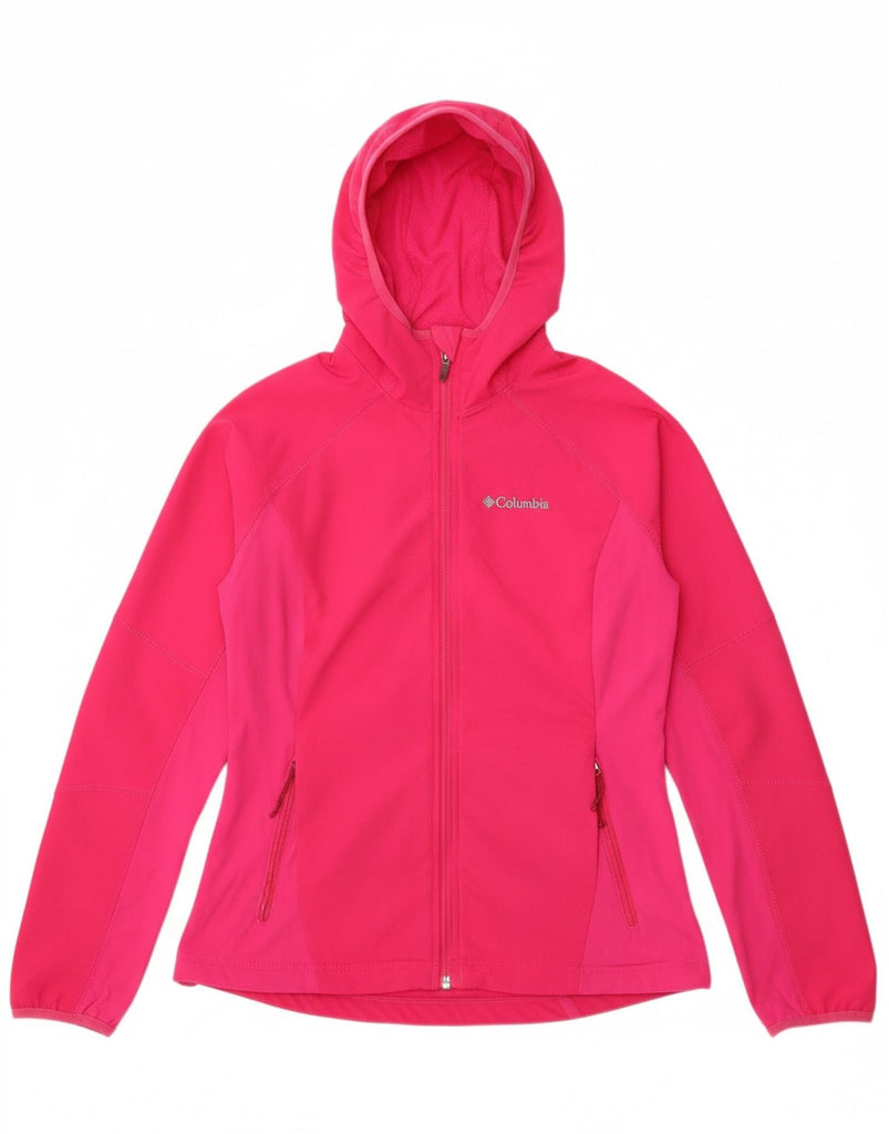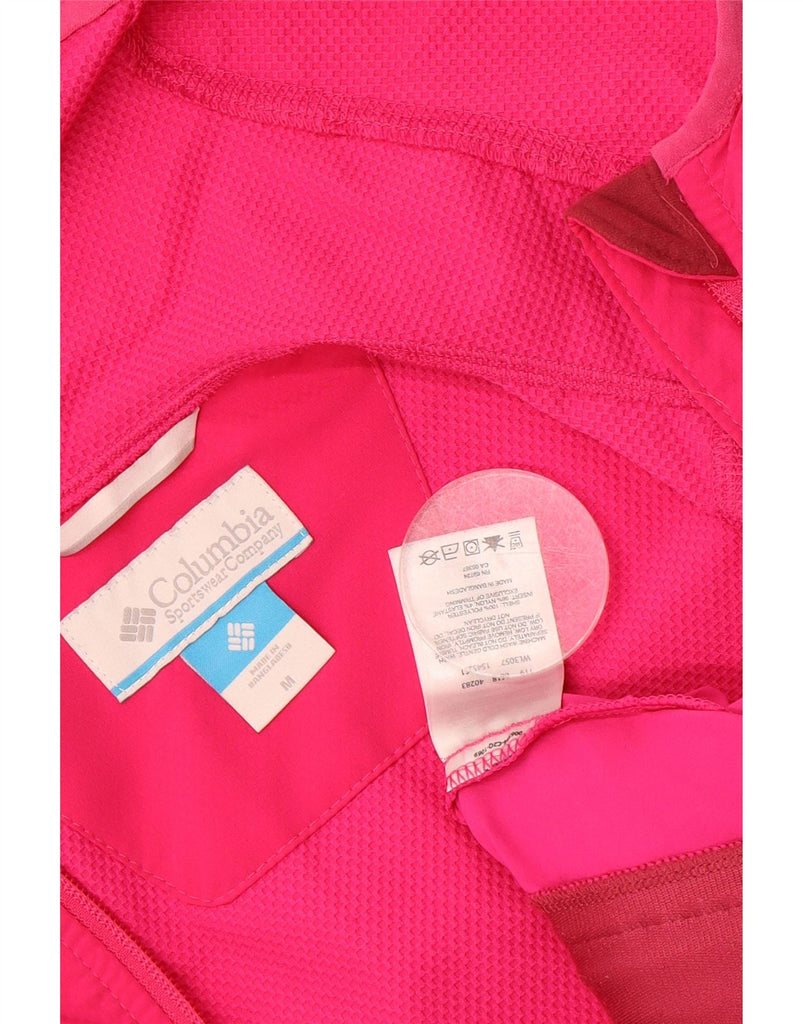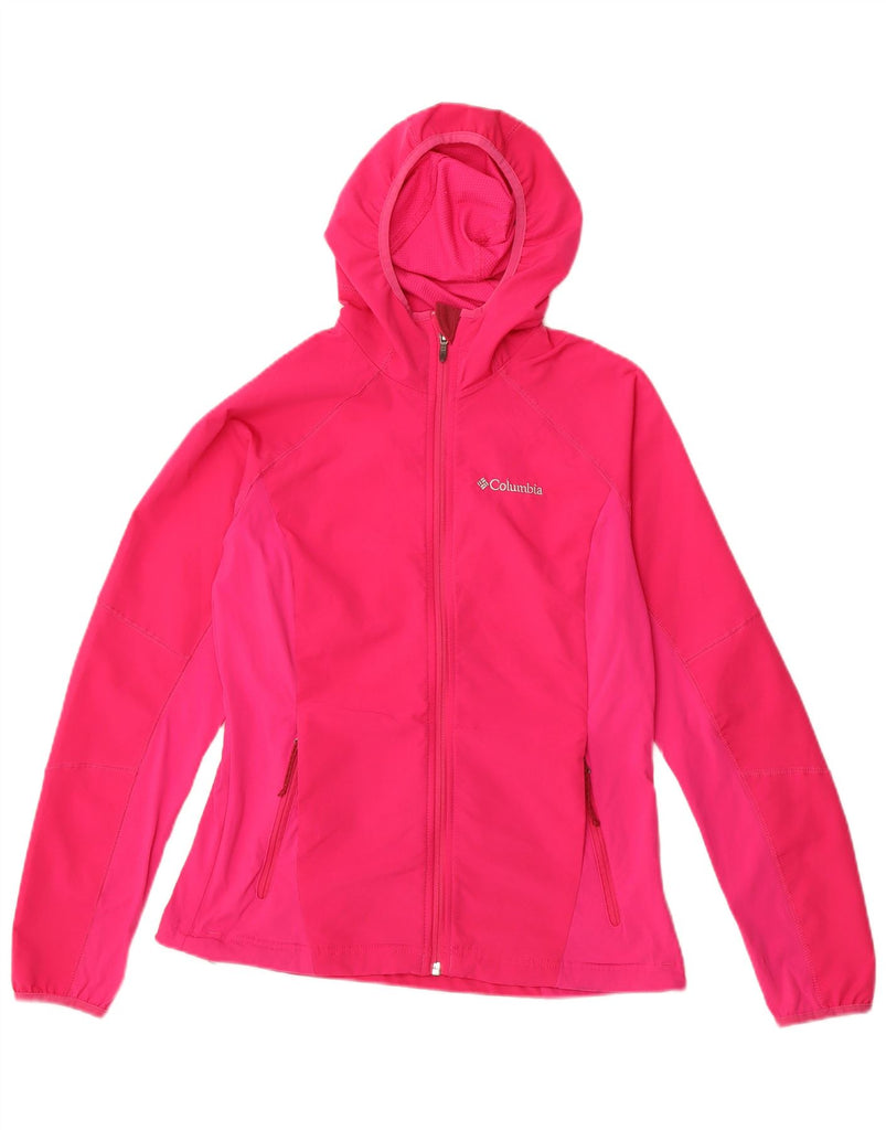 COLUMBIA Womens Hooded Rain Jacket UK 12 Medium Pink Colourblock Polyester