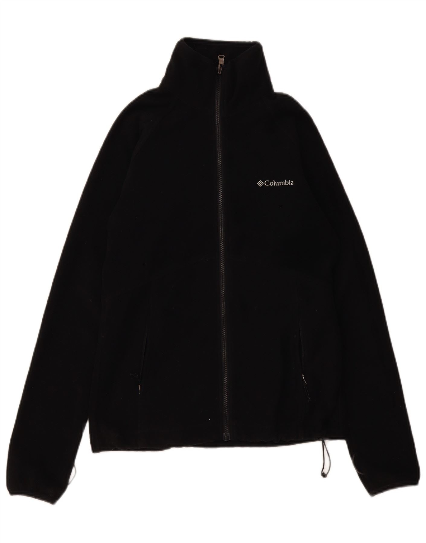 - AI Description: This Columbia womens fleece jacket is crafted from soft black 100 polyester fleece. It features a high neck and a full zip closure for warmth and versatility. Long sleeves provide ample coverage. The regular fit ensures comfortable wear. Practical pockets and an adjustable hem add functional detail. A subtle embroidered logo completes the design.