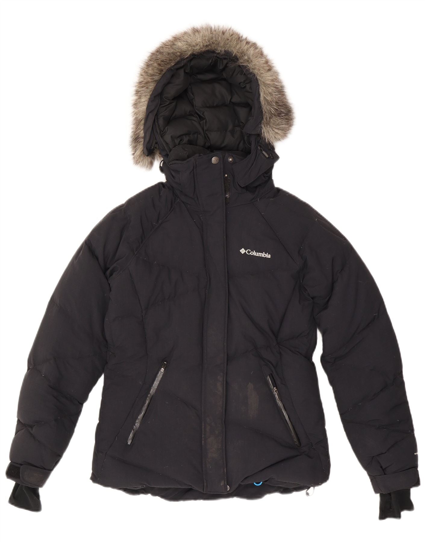 COLUMBIA Womens Omni-Heat Hooded Padded Jacket UK 10 Small Navy Blue Nylon