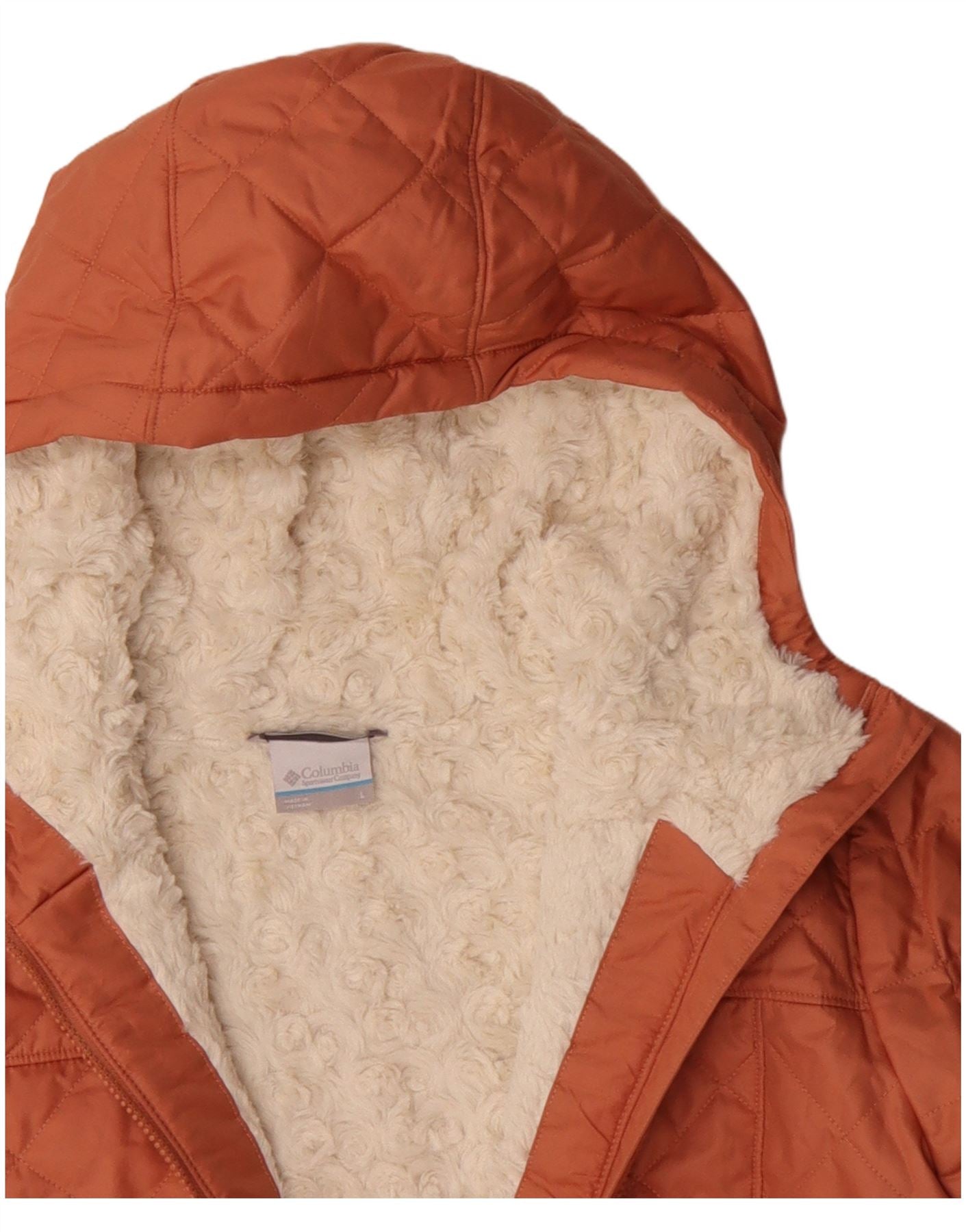 COLUMBIA Womens Sherpa Hooded Quilted Jacket UK 16 Large Orange Polyester