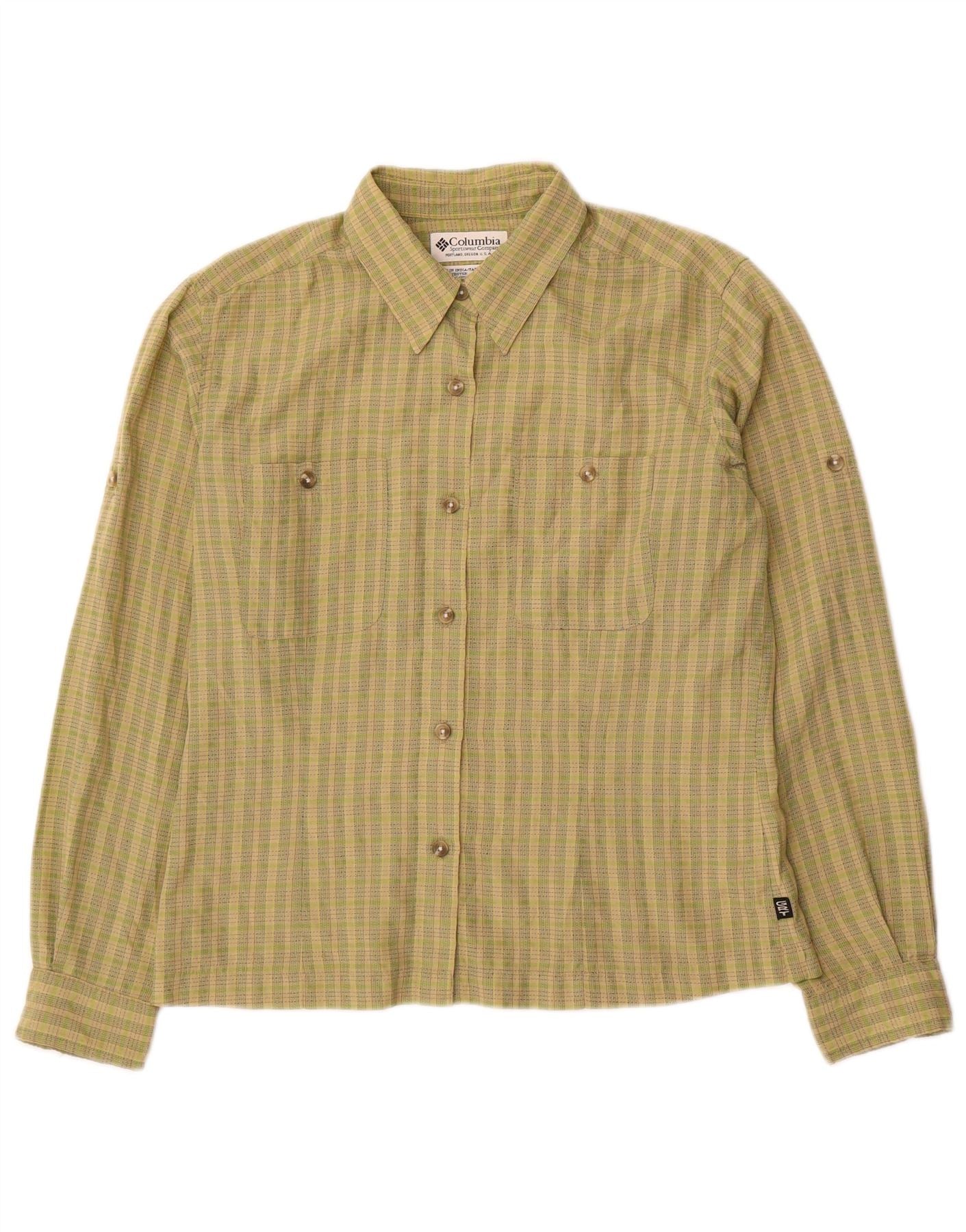COLUMBIA Womens Shirt Blouse UK 10 Small Green Check Polyester