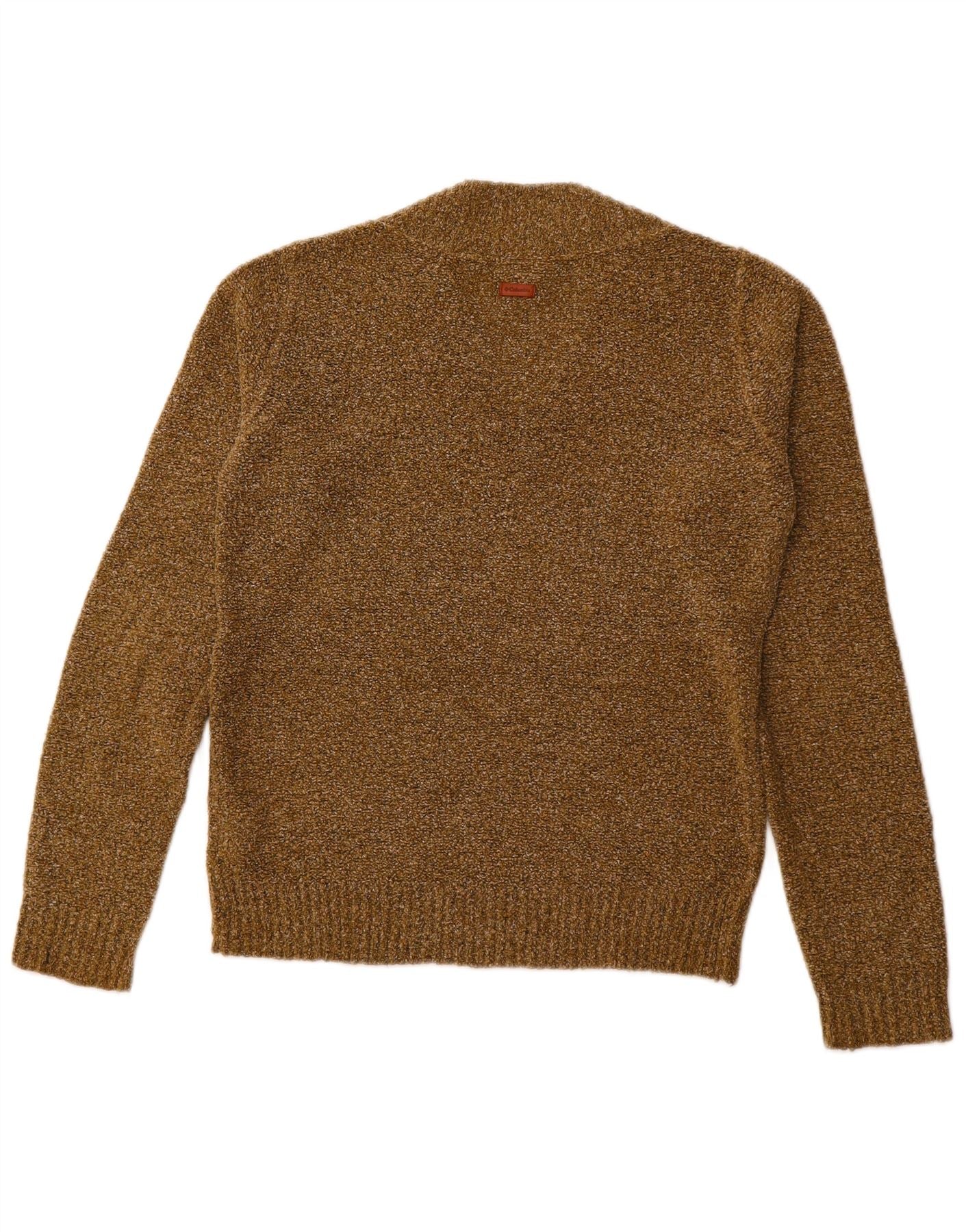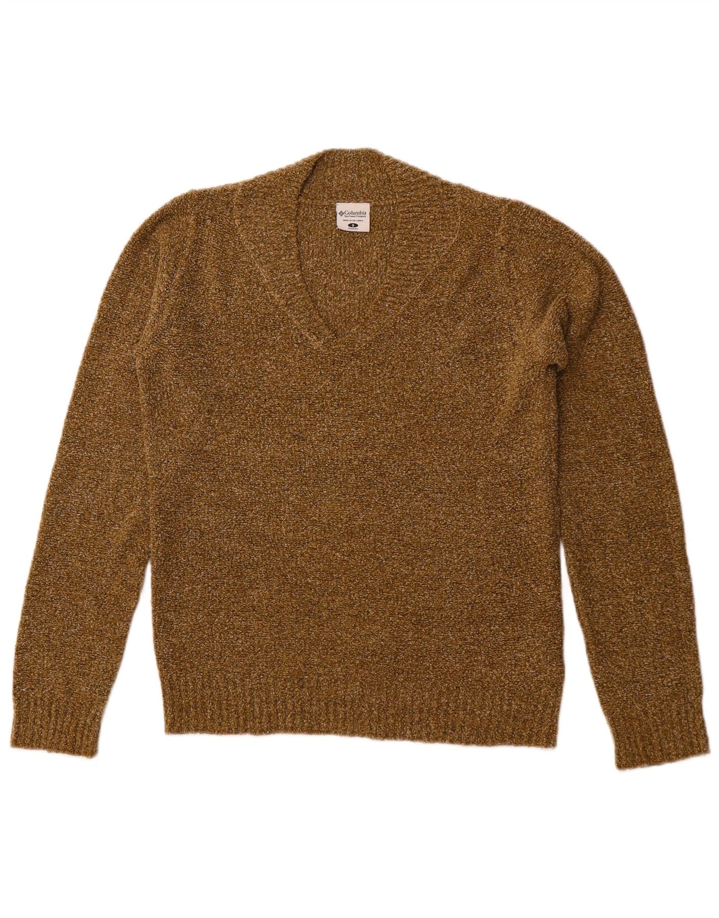 COLUMBIA Womens V-Neck Jumper Sweater UK 10 Small Khaki Acrylic