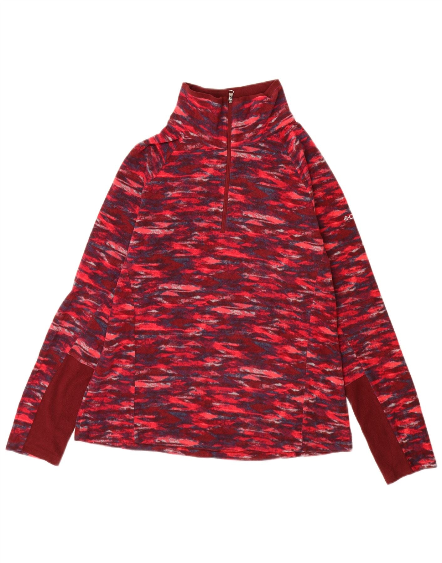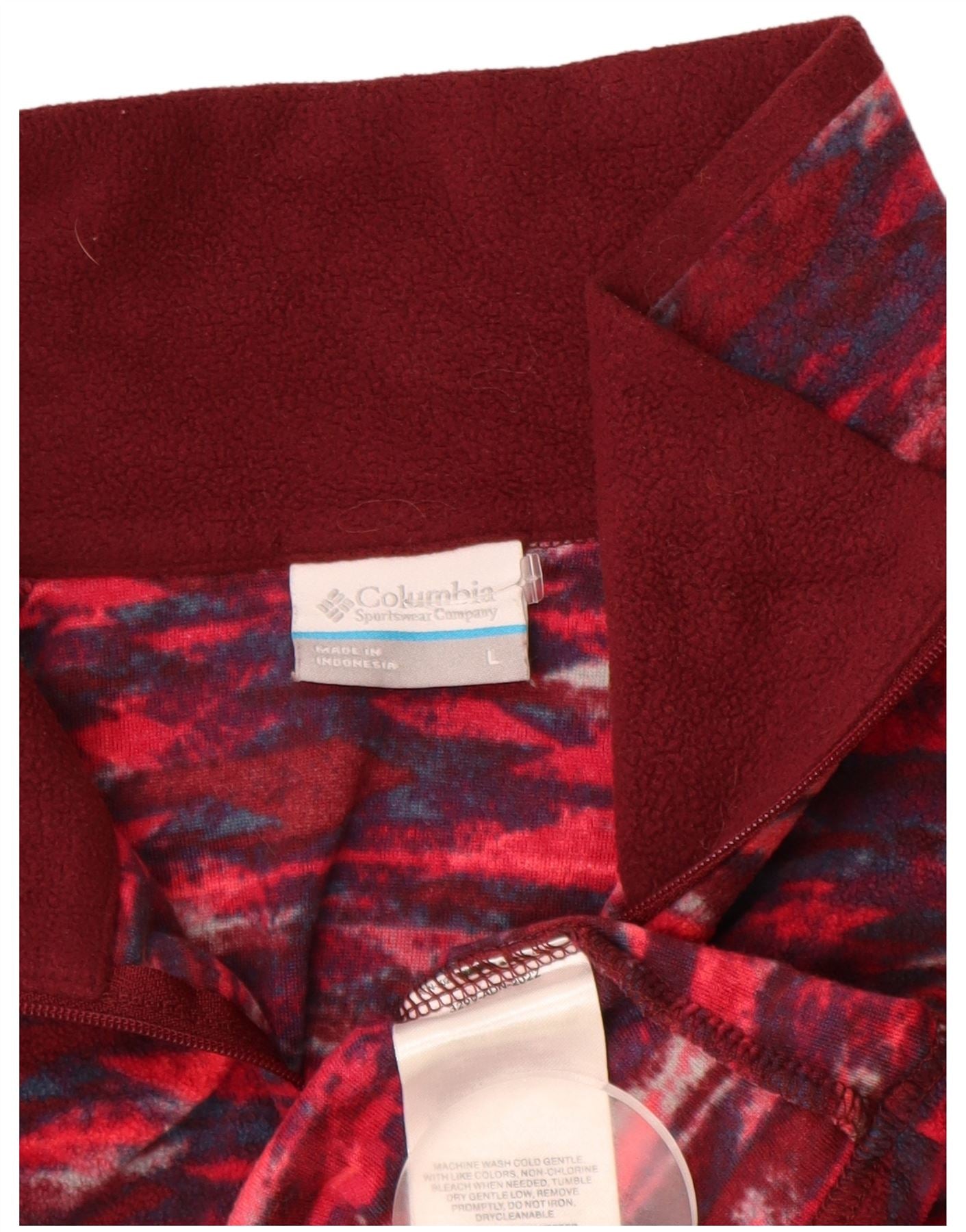 COLUMBIA Womens Zip Neck Fleece Jumper UK 16 Large Burgundy Geometric