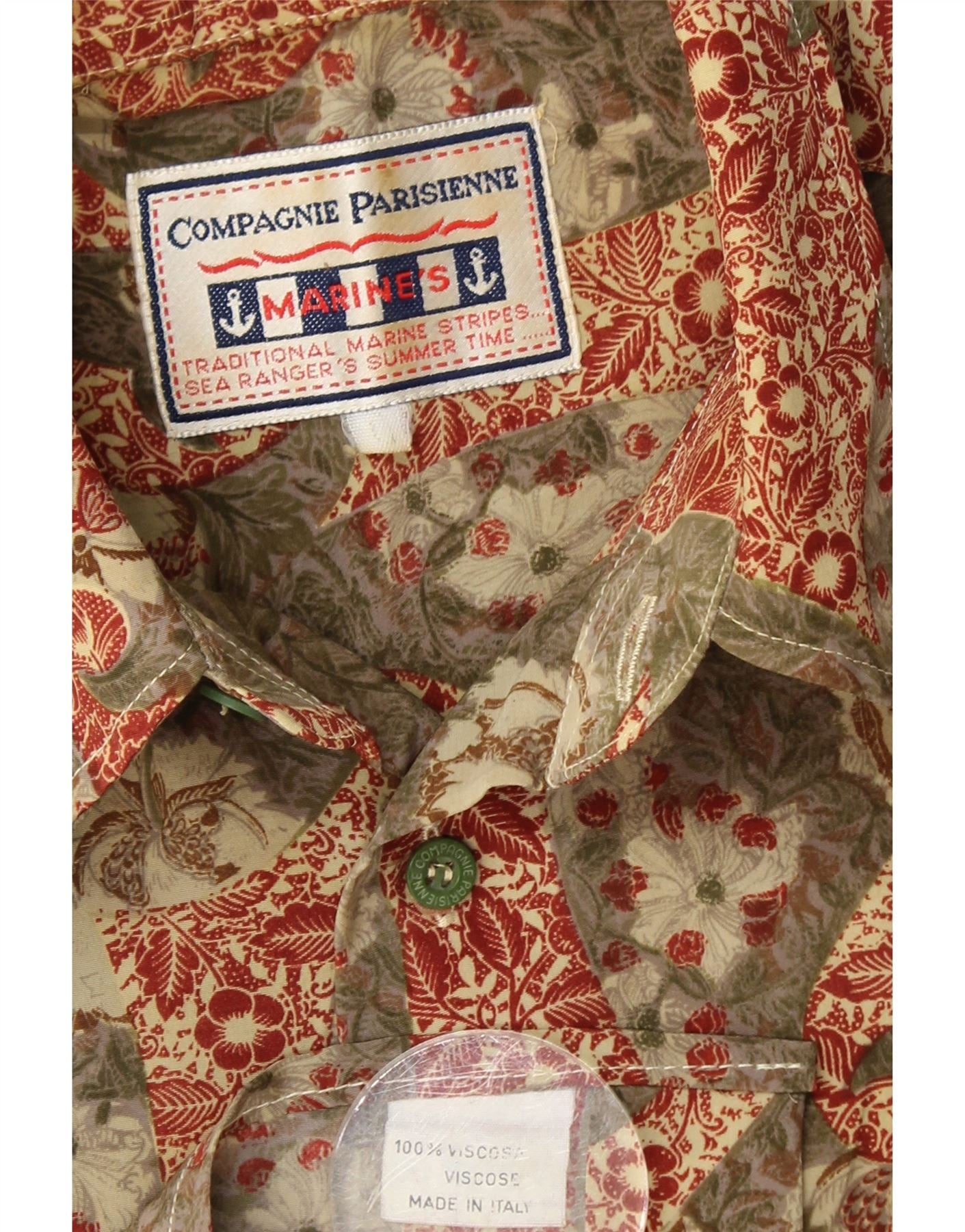 COMPAGNIE Mens Short Sleeve Shirt Large Khaki Floral Viscose