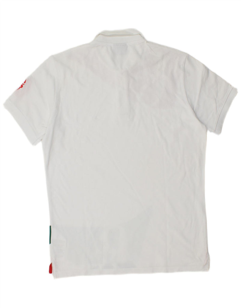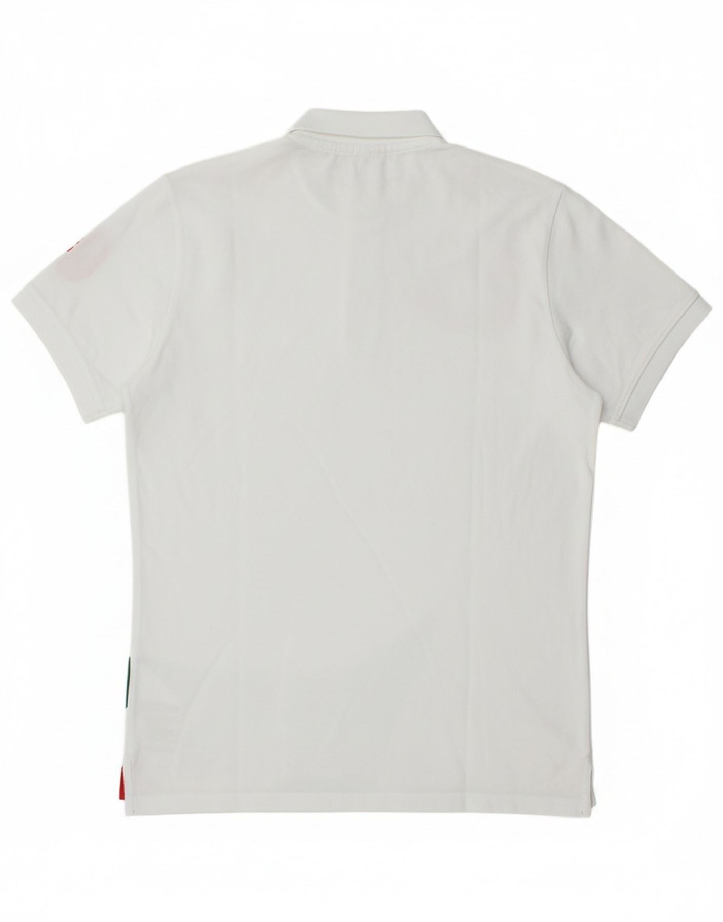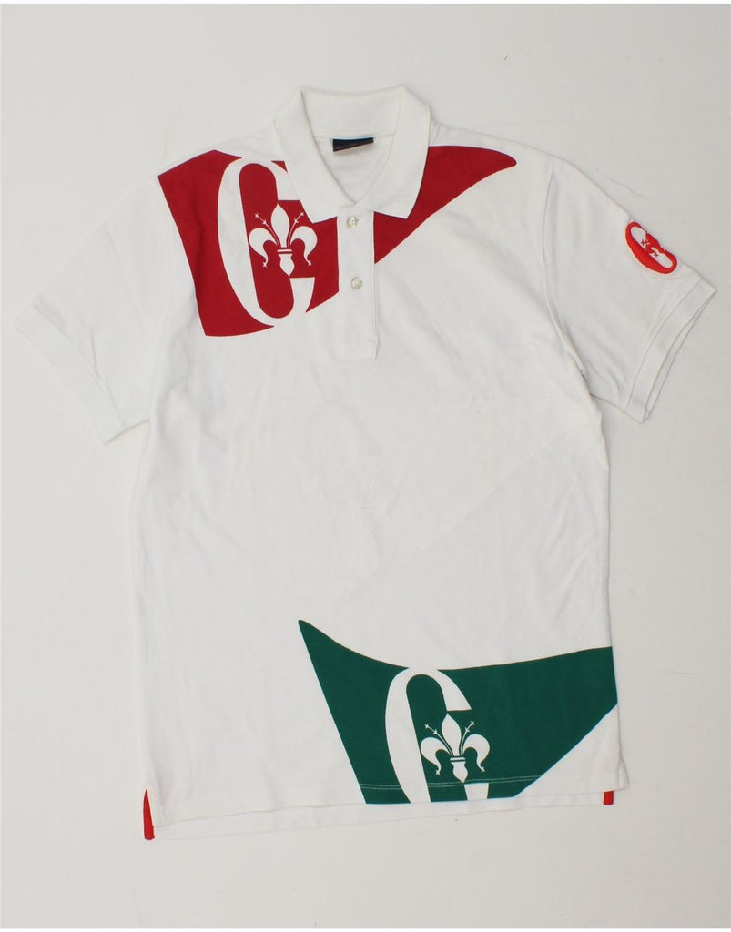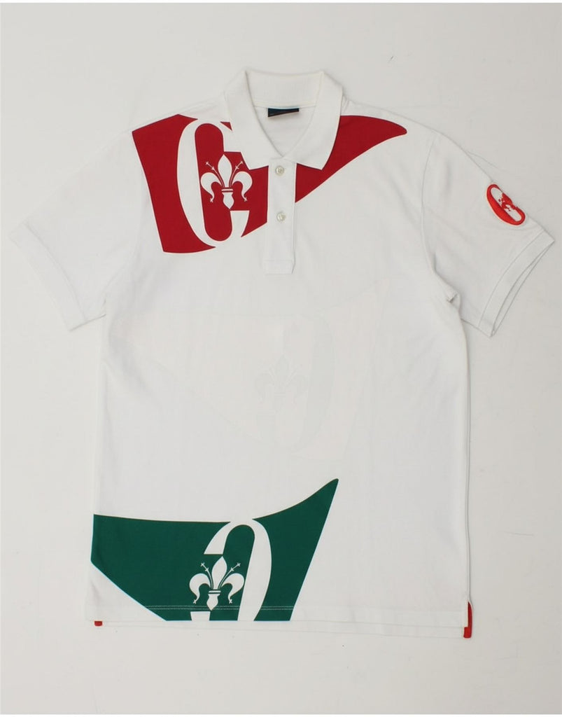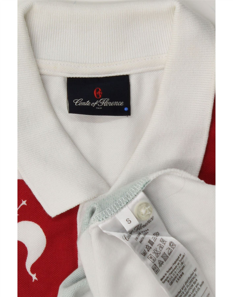 CONTE OF FLORENCE Mens Graphic Polo Shirt Small White Colourblock Cotton