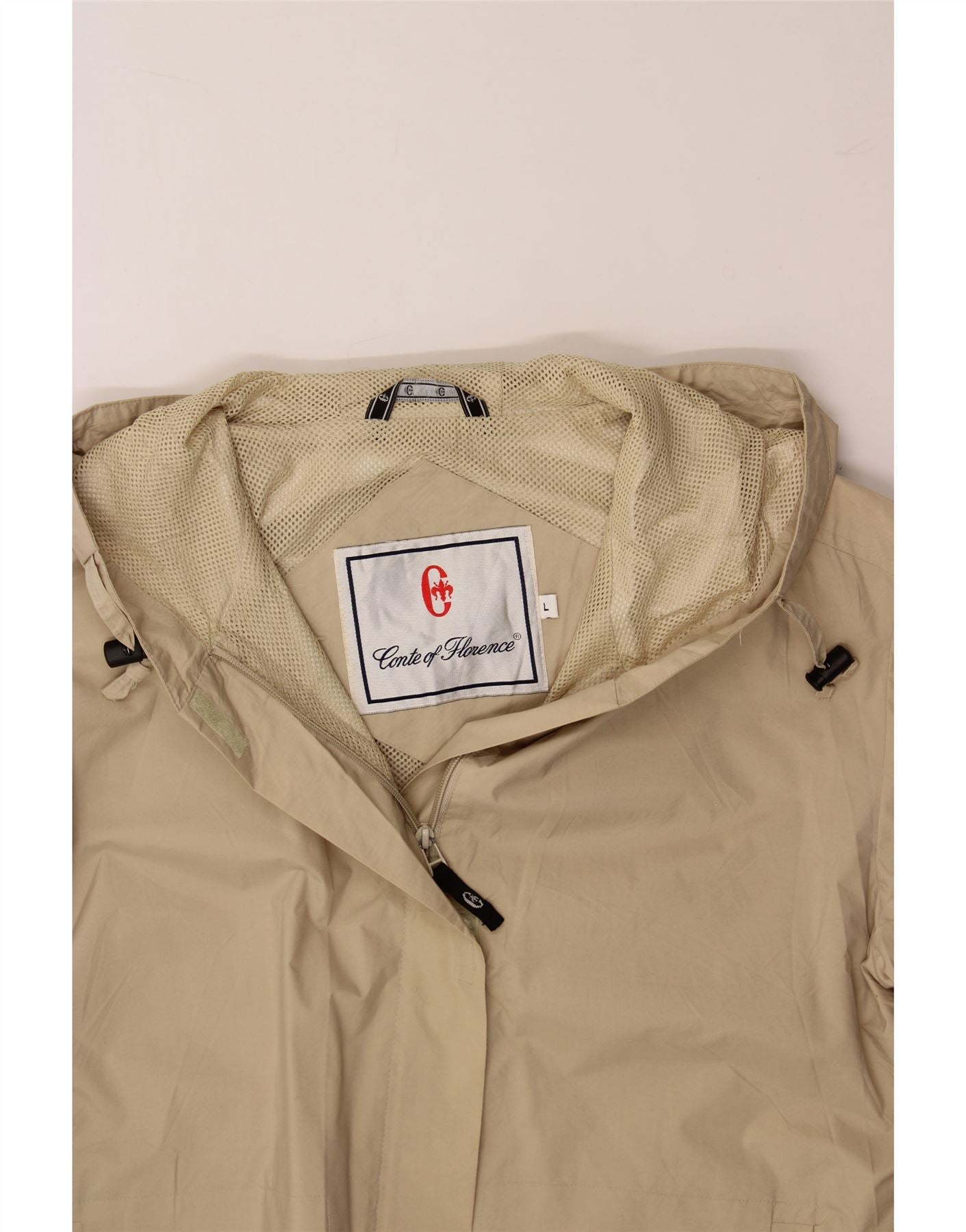 CONTE OF FLORENCE Womens Hooded Rain Jacket UK 16 Large Beige Polyamide