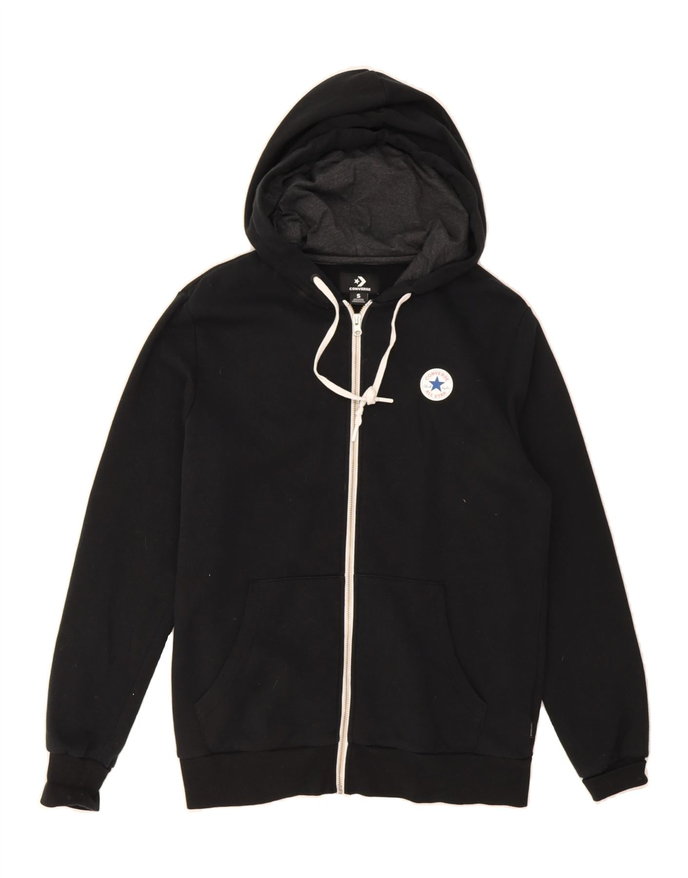 CONVERSE Mens Zip Hoodie Sweater Small Black Cotton