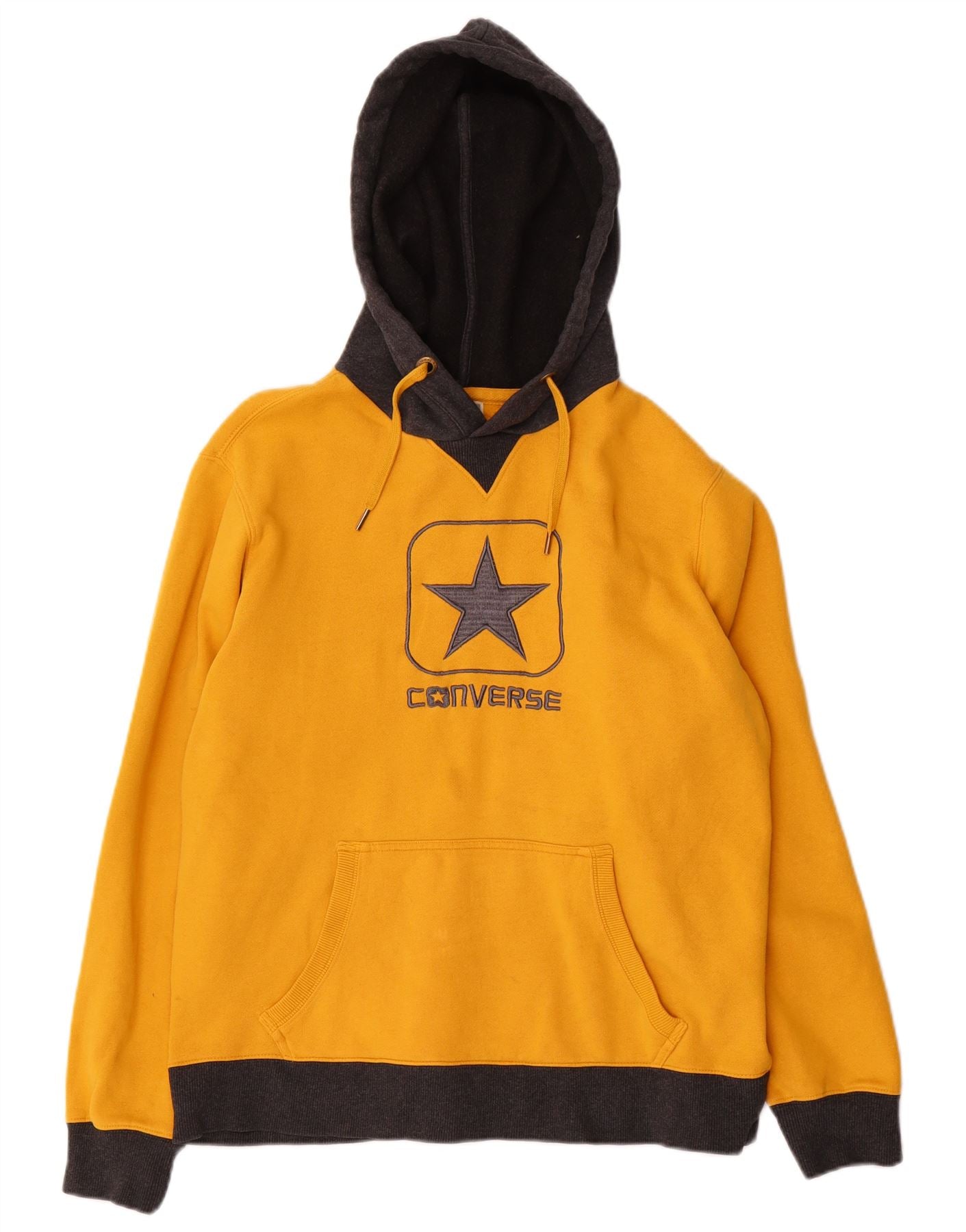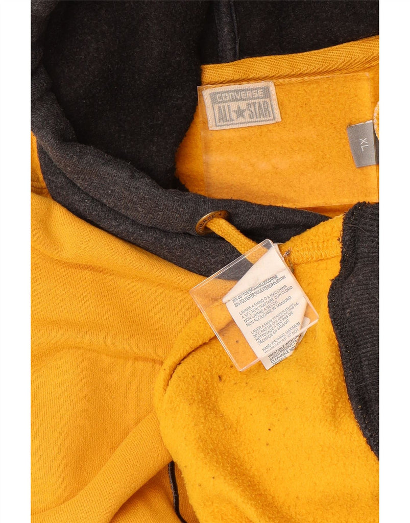 CONVERSE Womens Graphic Hoodie Jumper UK 18 XL Yellow Colourblock Cotton