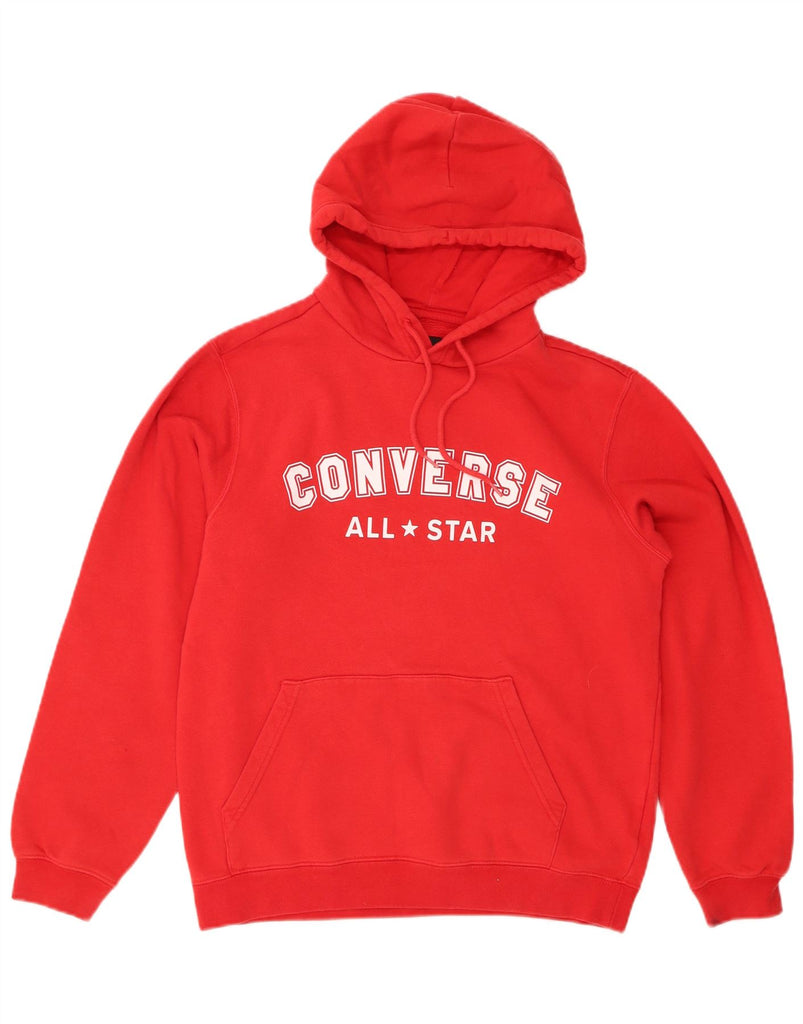 CONVERSE Womens Oversized Graphic Hoodie Jumper UK 10 Small Red Cotton