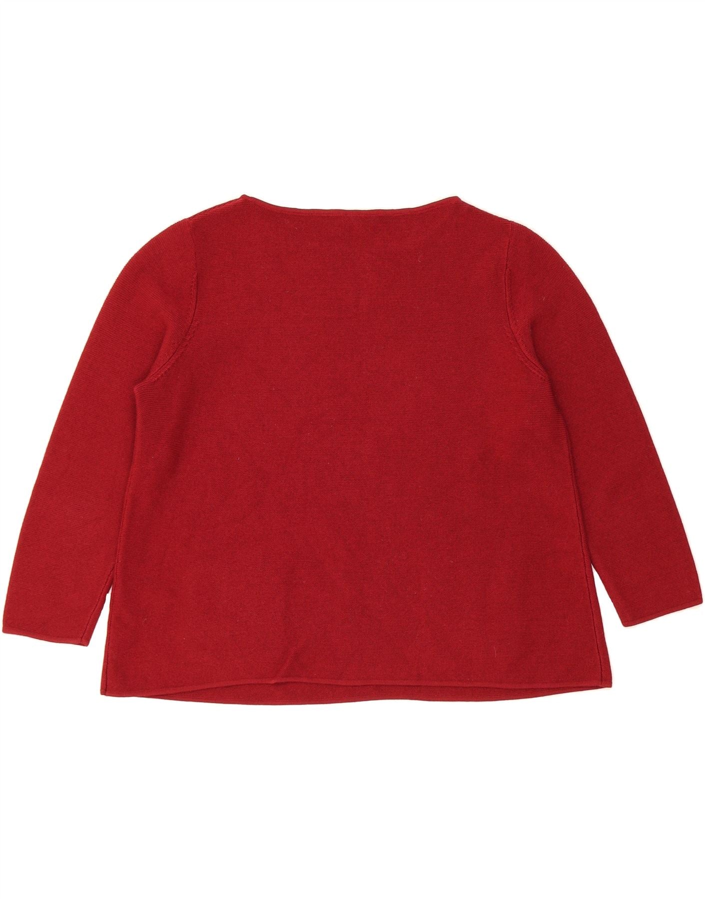 - AI Description: This pre-owned, red Cos jumper offers classic style and cosy warmth. Crafted from 100% wool knit, this round neck sweater features long sleeves, a regular fit, and a pullover closure. While in good condition, there is minor visible wear on the front. The design incorporates subtle button accents and pockets. Size L. Washing instructions: use mild detergent.