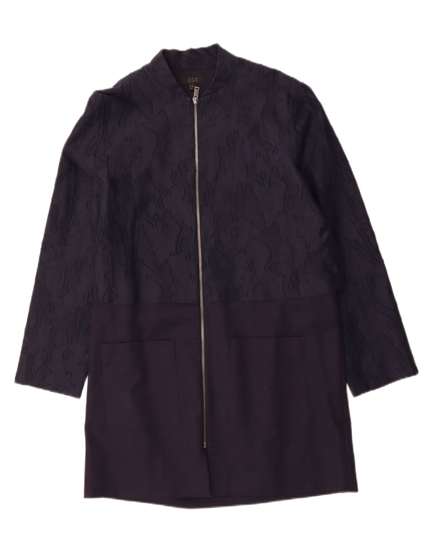 COS Womens Overcoat EU 40 Medium Navy Blue Camouflage Cotton