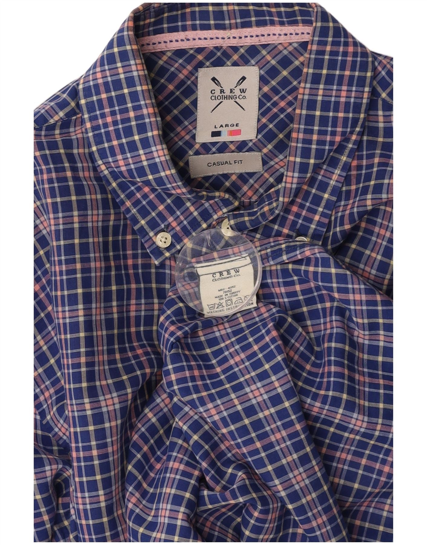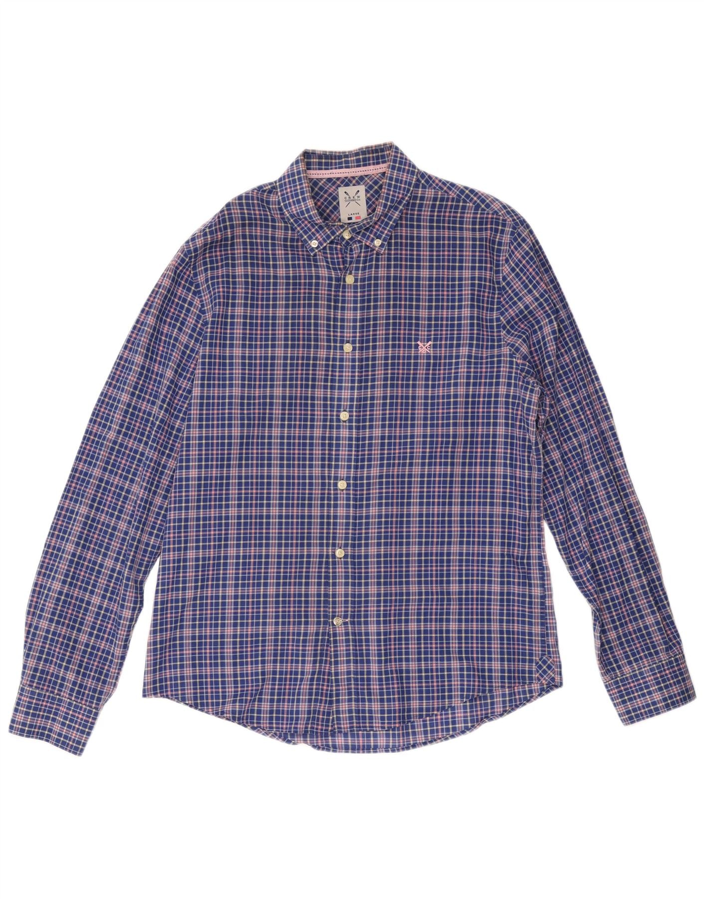 CREW CLOTHING Mens Casual Fit Shirt Large Blue Check Cotton