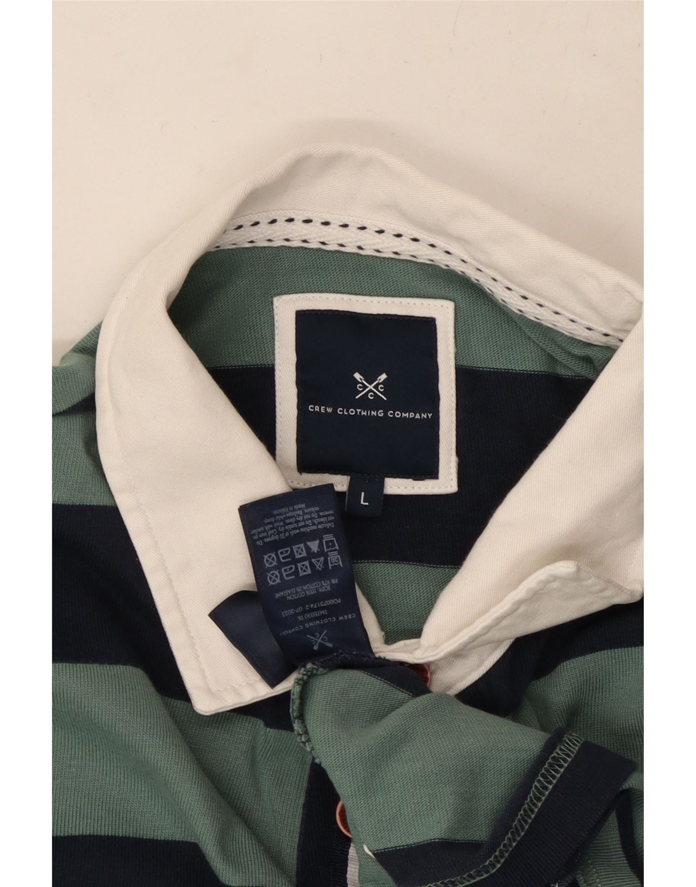 CREW CLOTHING Mens Long Sleeve Rugby Polo Shirt Large Navy Blue Striped