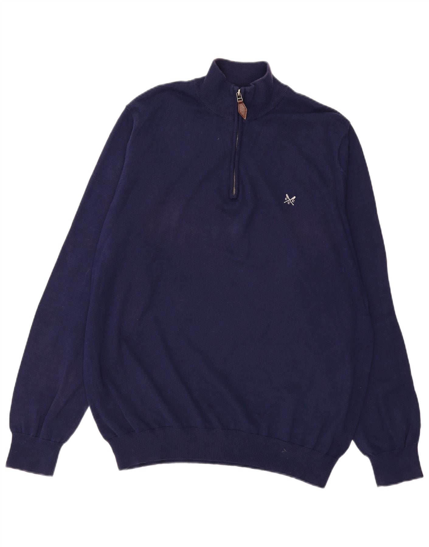 CREW CLOTHING Mens Zip Neck Jumper Sweater 3XL Navy Blue Cotton