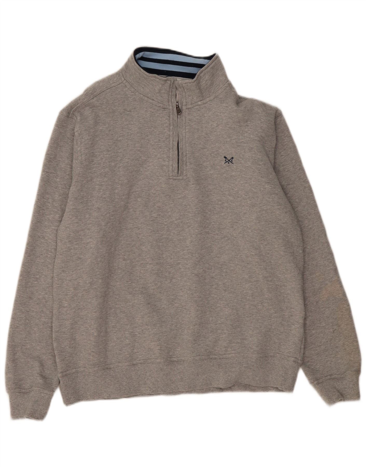 CREW CLOTHING Mens Zip Neck Sweatshirt Jumper XL Grey Cotton