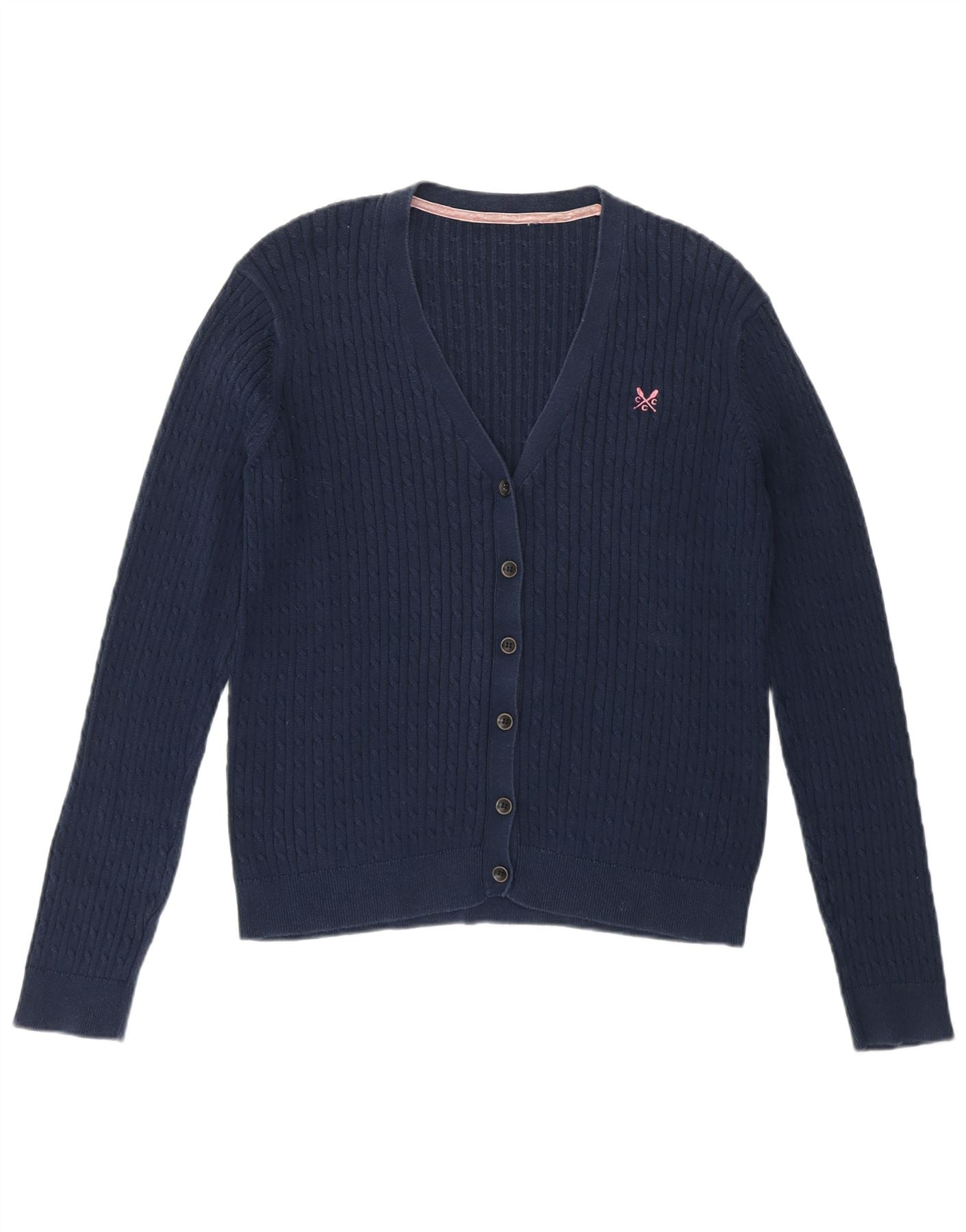 CREW CLOTHING Womens Cardigan Sweater UK 14 Large Navy Blue Cotton