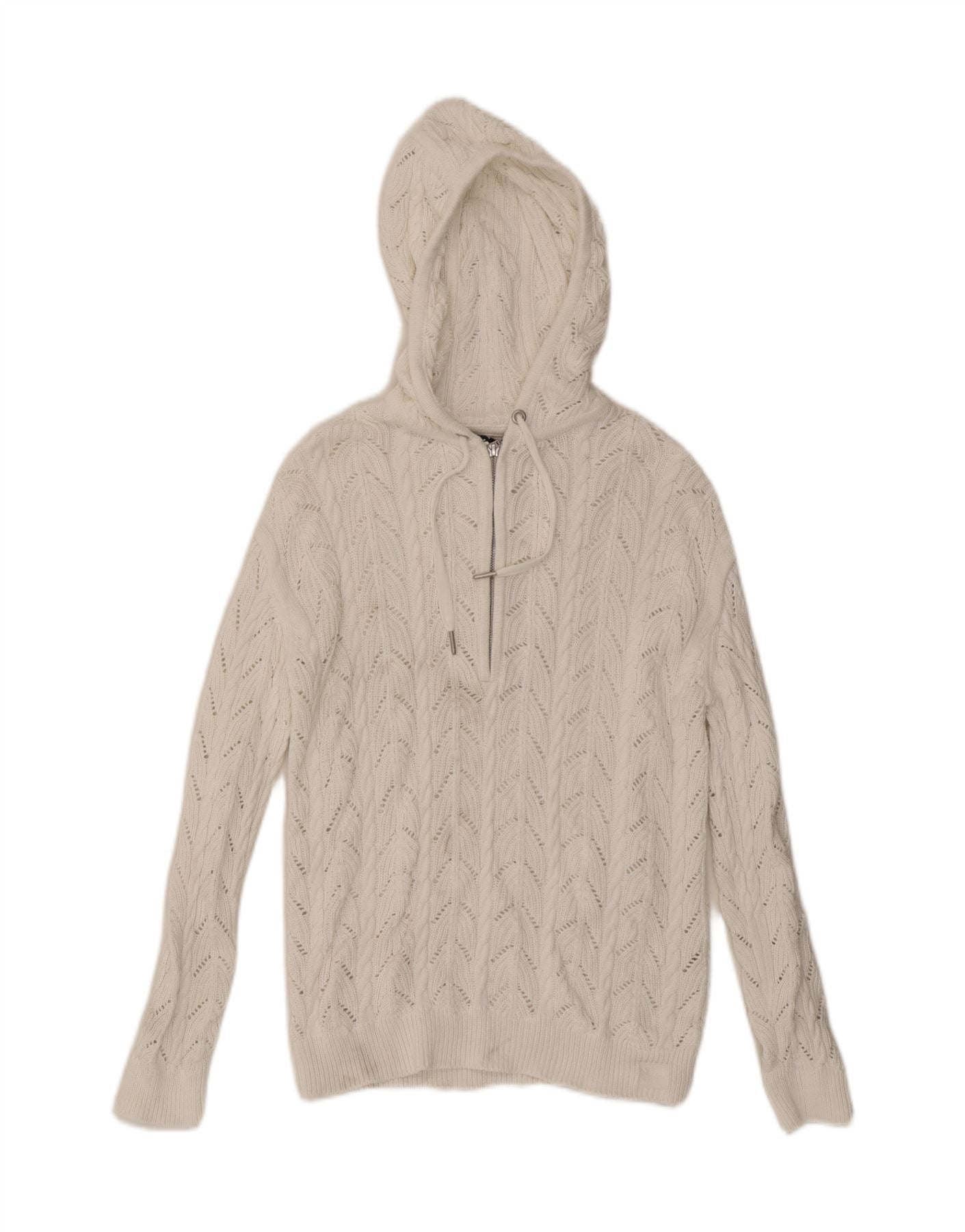 CREW CLOTHING Womens Hooded Zip Neck Jumper Sweater UK 10 Small White