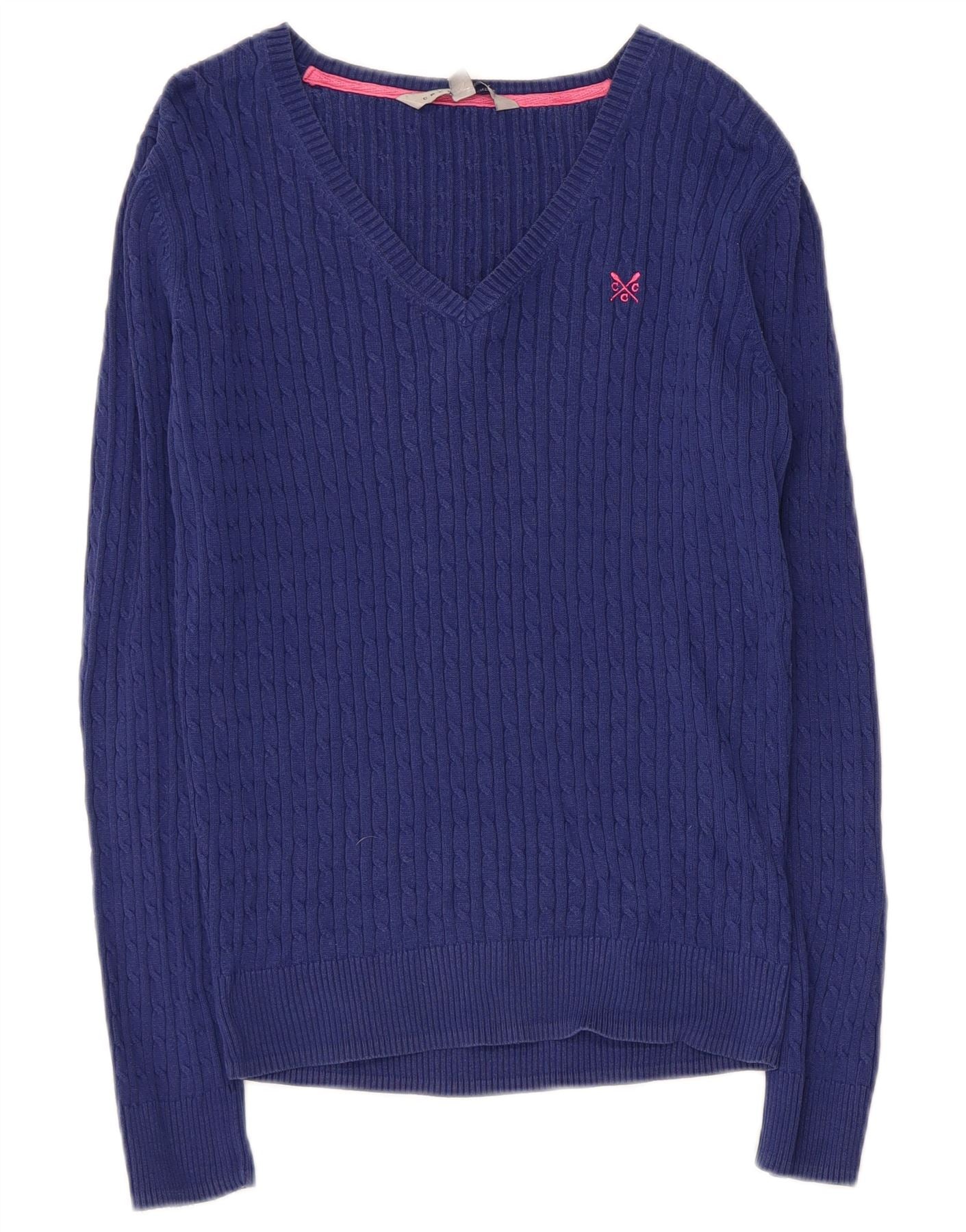 CREW CLOTHING Womens V-Neck Jumper Sweater UK 12 Medium Blue Cotton