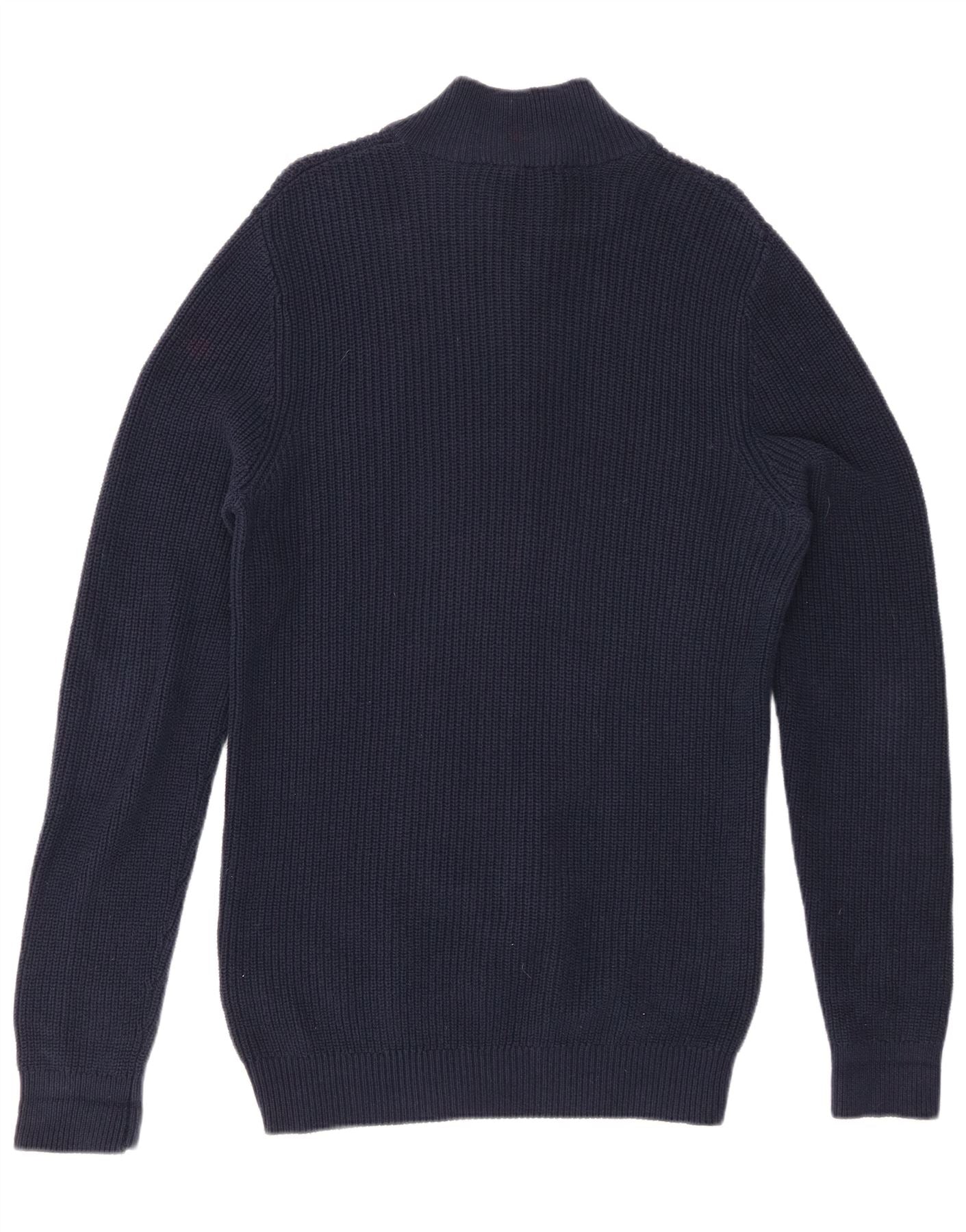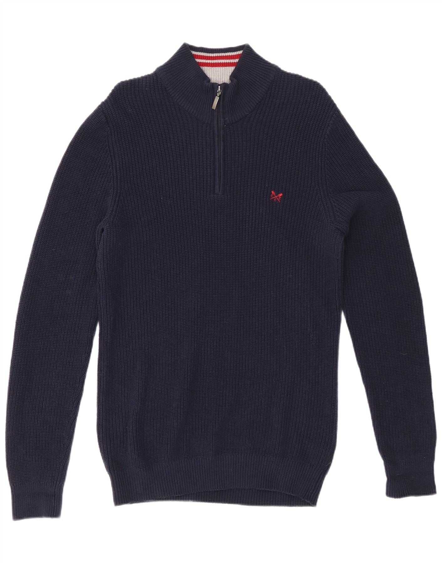 CREW CLOTHING Womens Zip Neck Jumper Sweater UK 14 Medium Navy Blue Cotton