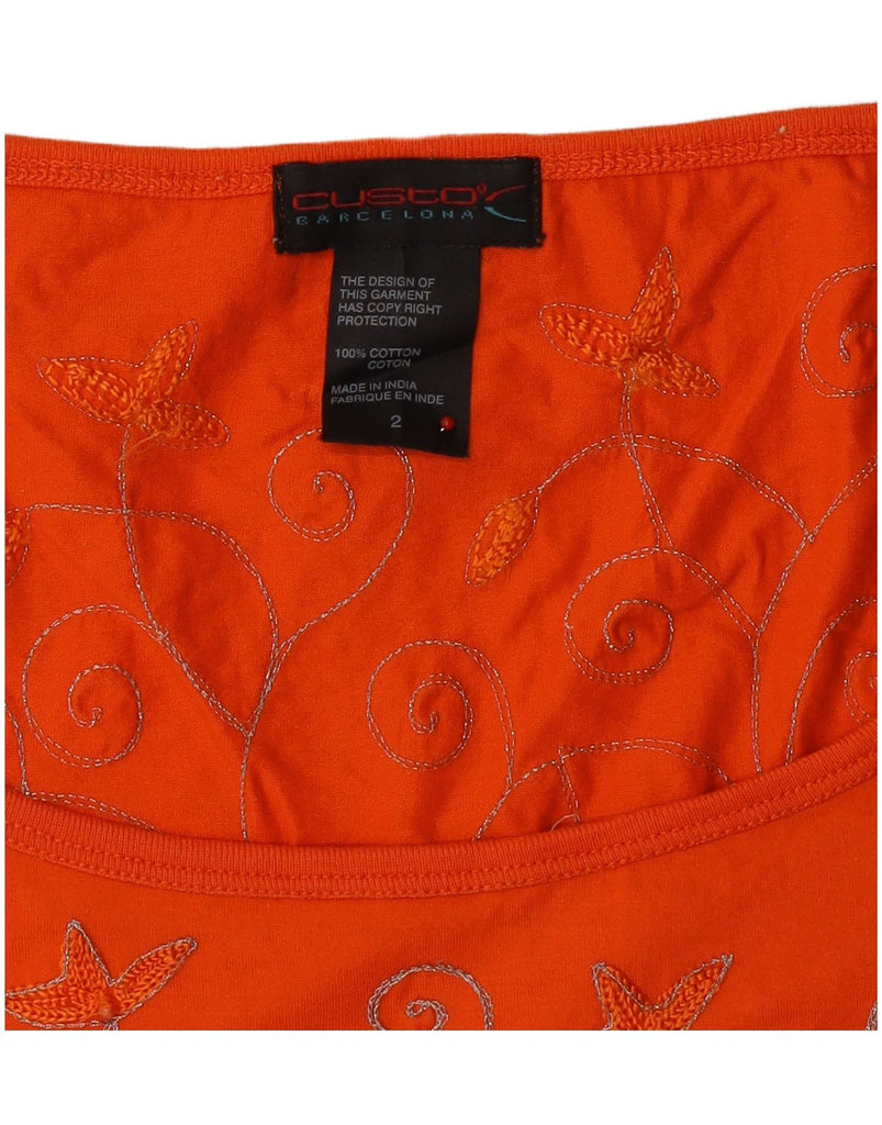 CUSTO BARCELONA Womens Crop Blouse Top US 2 XS Orange Paisley Cotton