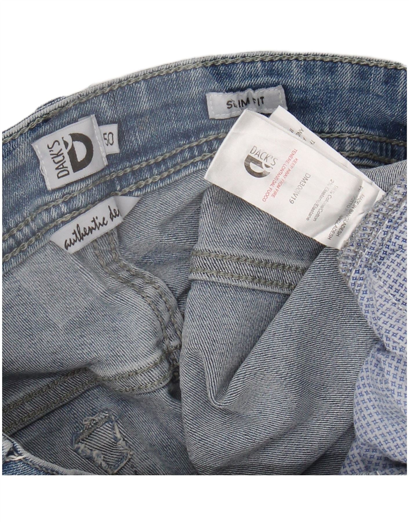 DACK'S Mens Slim Jeans IT 50 Large W34 L31 Blue Cotton