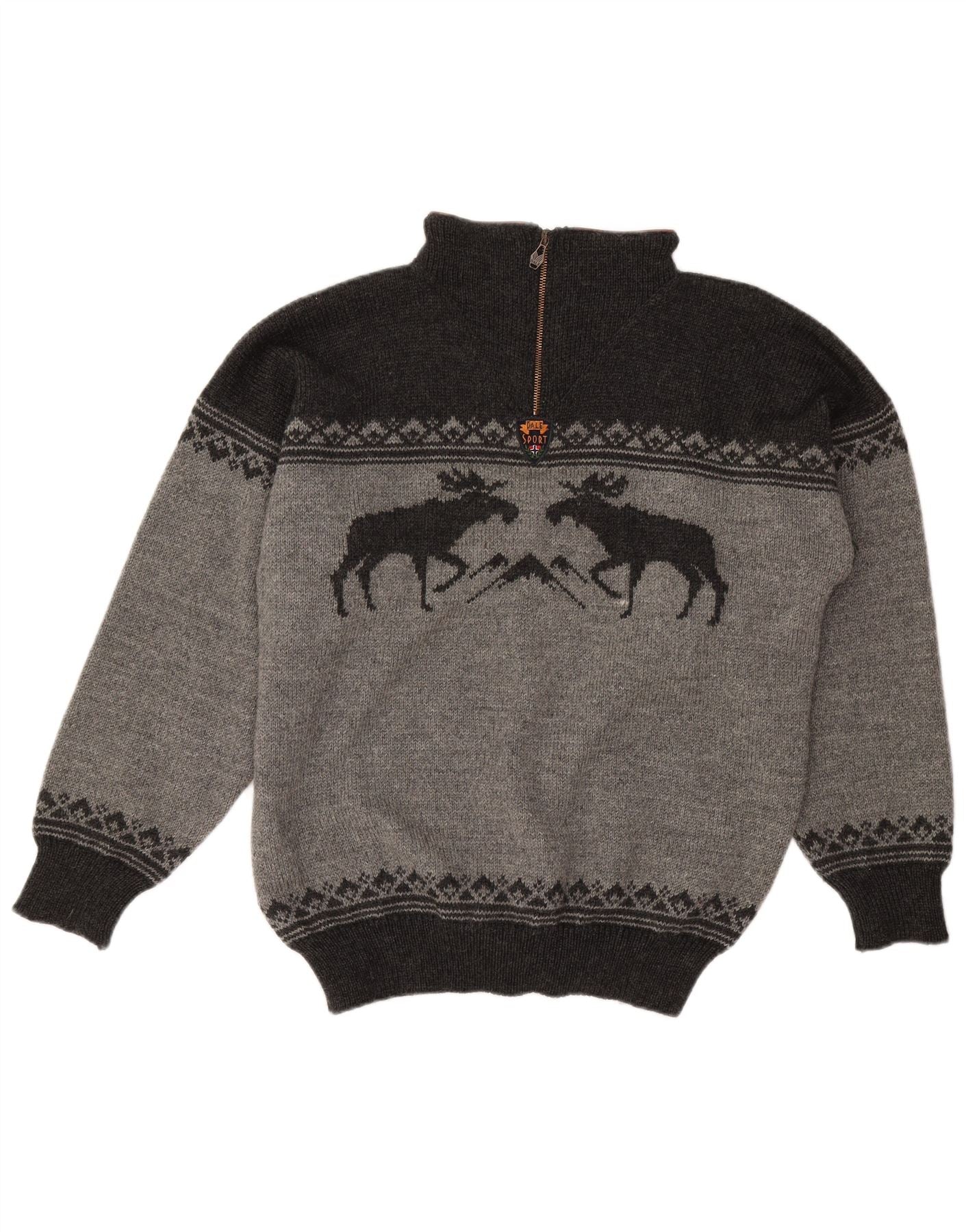 DALE OF NORWAY Mens Zip Neck Jumper Sweater Large Grey Fair Isle Wool