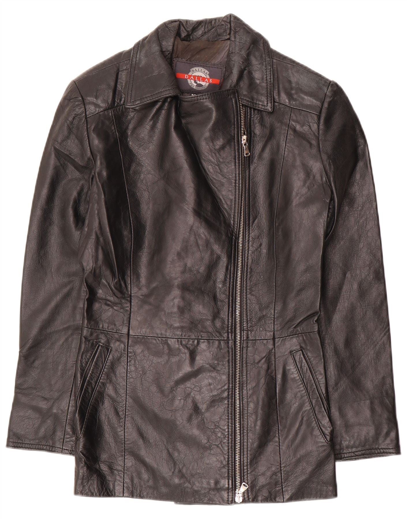 DALLAS Womens Zip Leather Jacket IT 44 Medium Black Leather