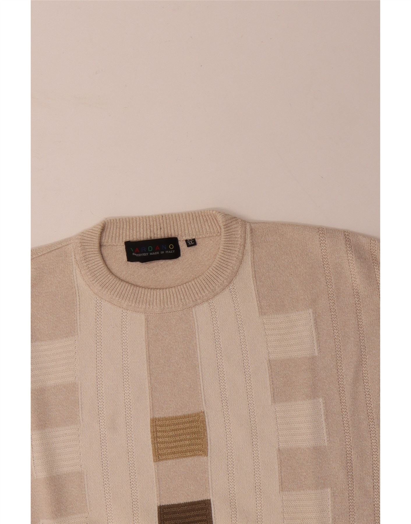 DARDANO Mens Crew Neck Jumper Sweater XL Beige Geometric Cotton
