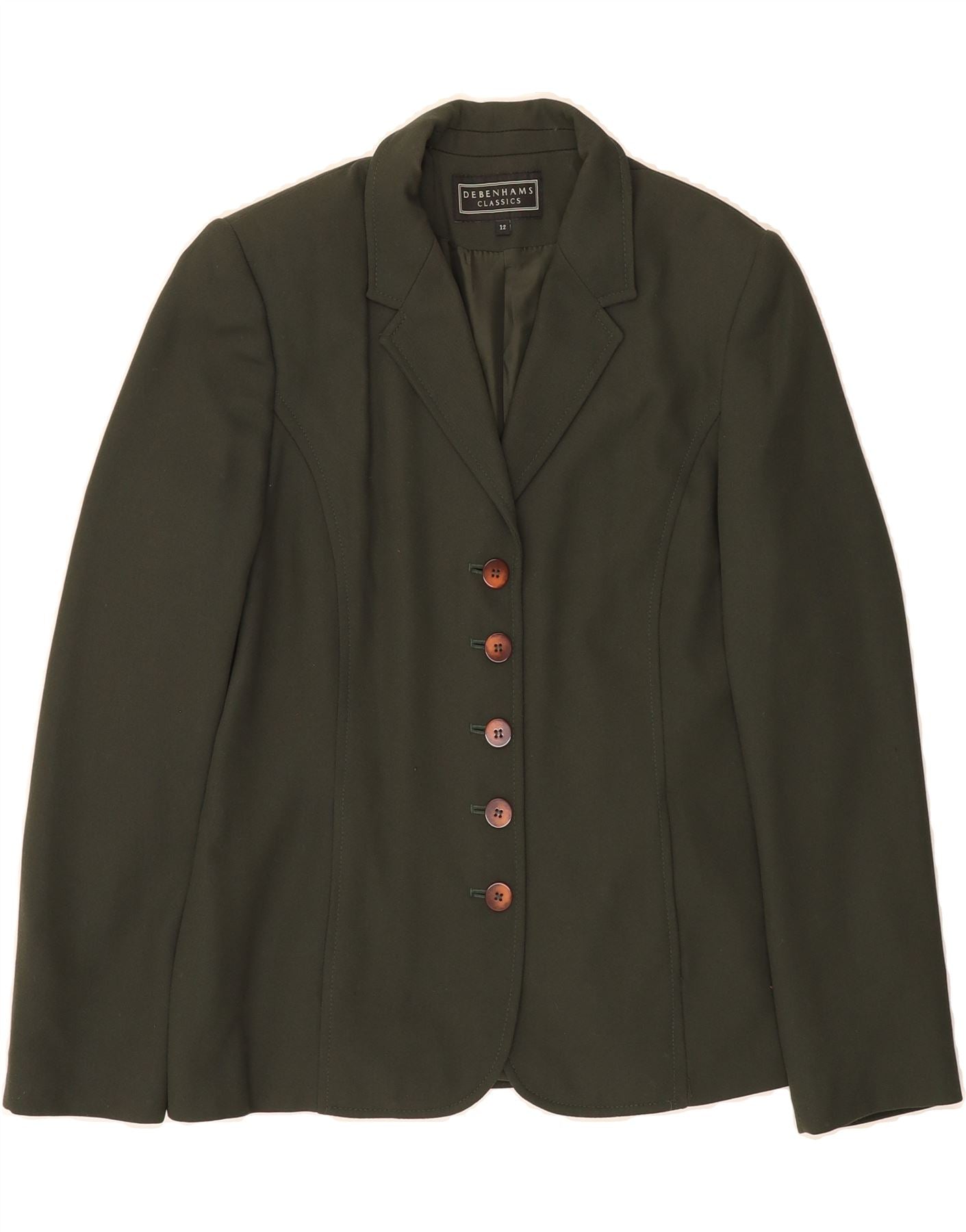 DEBENHAMS Womens 5 Button Blazer Jacket UK 12 Medium Green Polyester