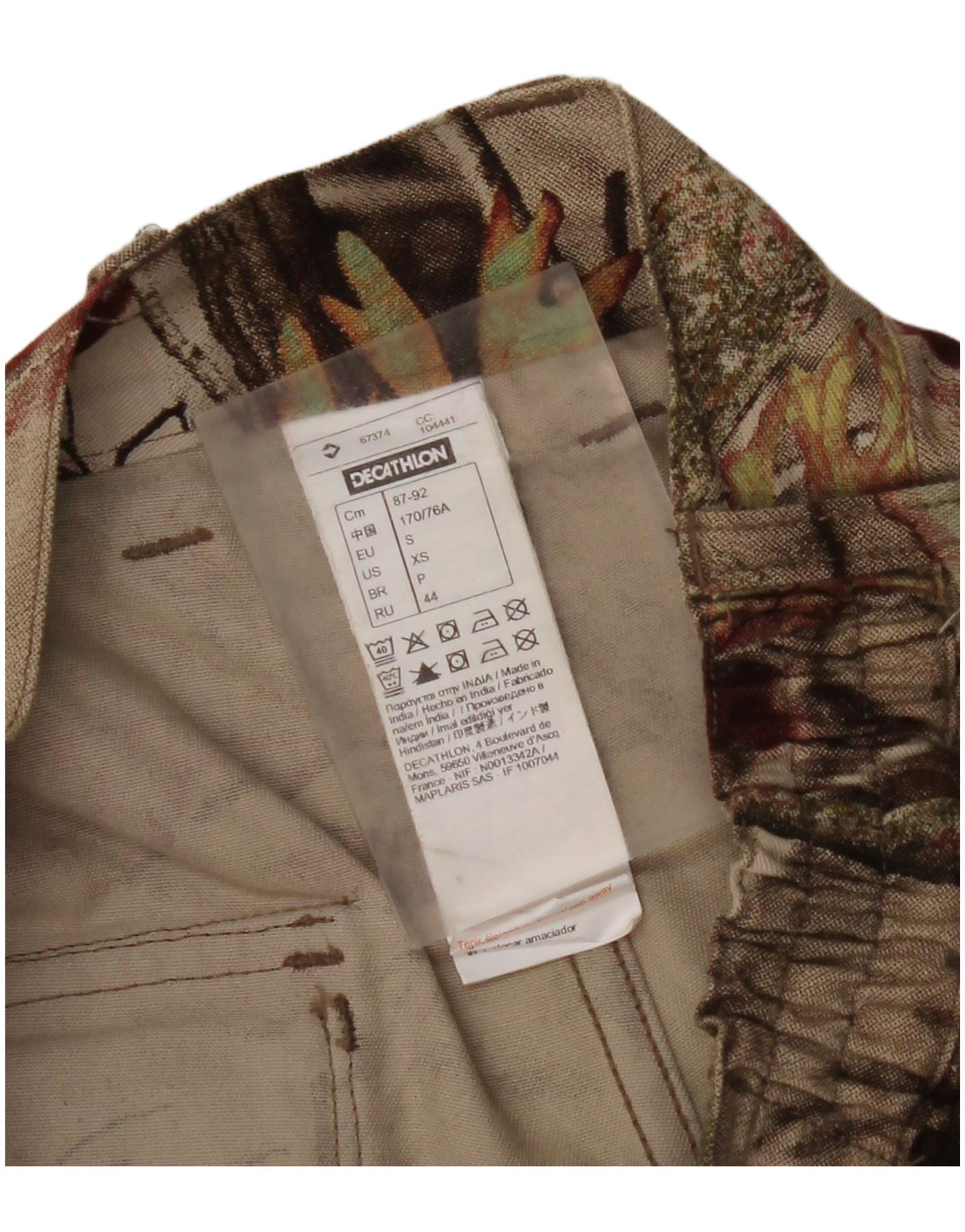 DECATHLON Womens Straight Cargo Trousers Small W27 L30 Beige Floral Cotton