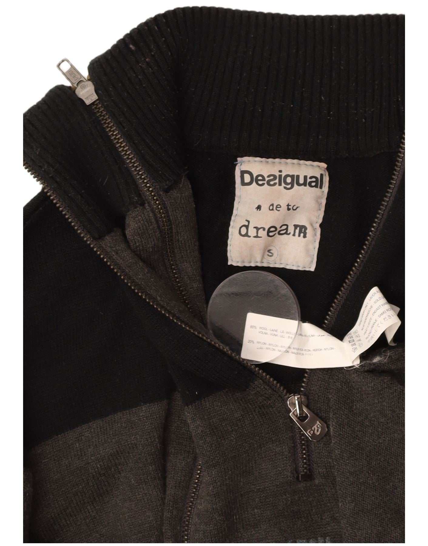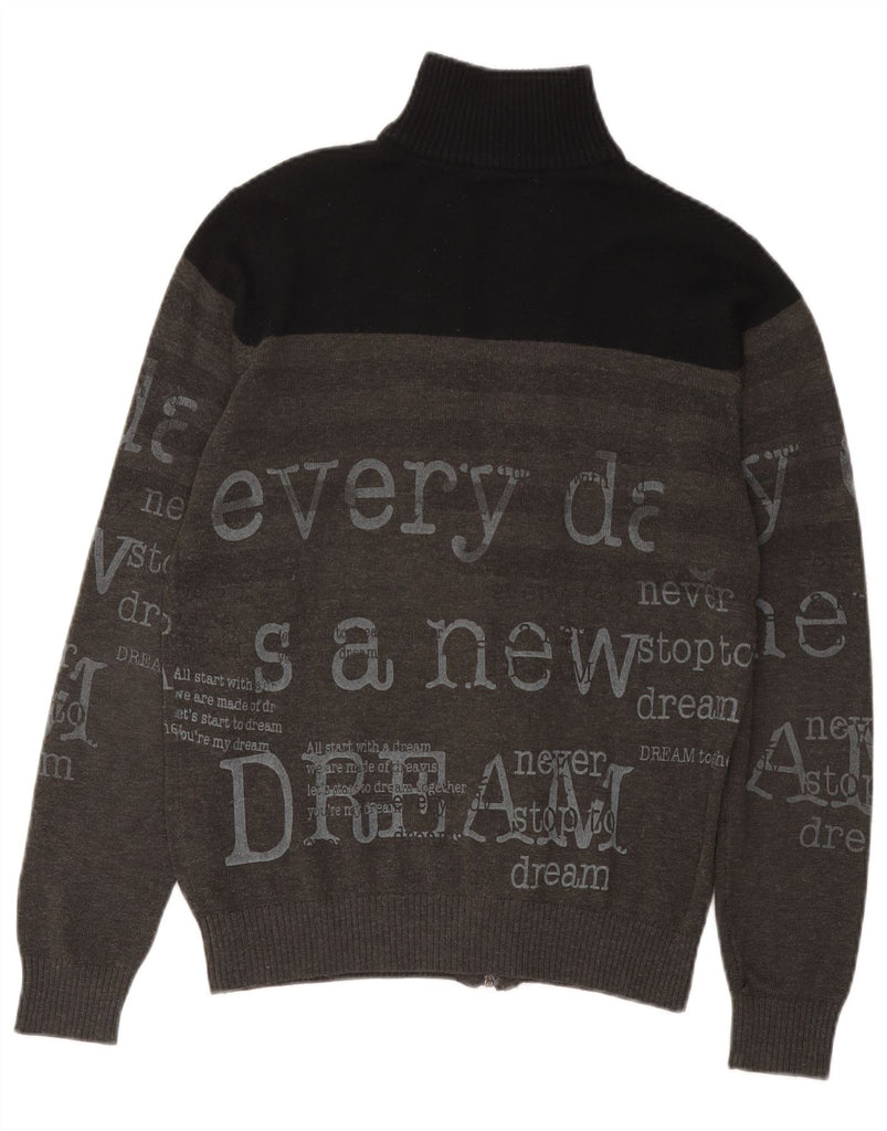 DESIGUAL Mens Graphic Cardigan Sweater Small Grey Colourblock Wool