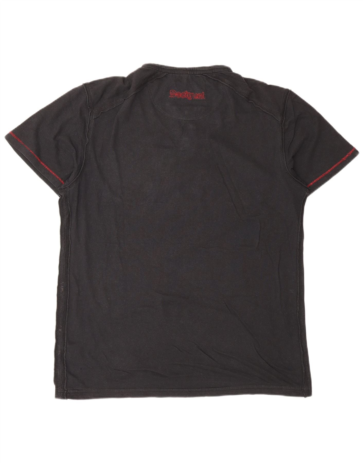 DESIGUAL Mens Graphic T-Shirt Top Medium Black Cotton