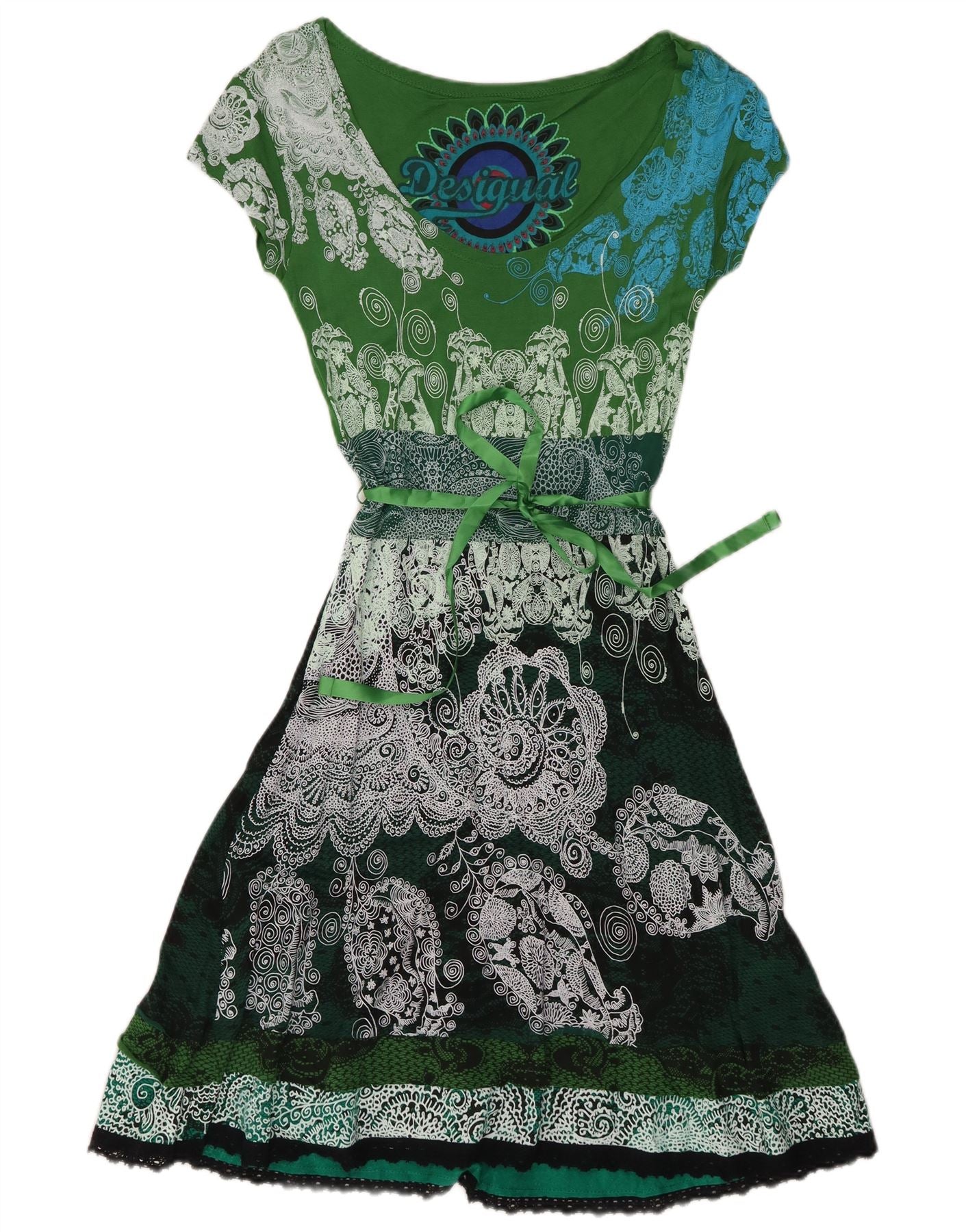DESIGUAL Womens A-Line Dress UK 12 Medium Green Paisley Viscose
