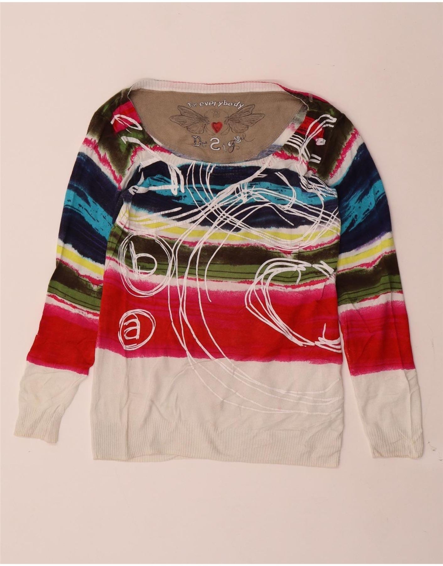 Desigual Womens Boat Neck Jumper Sweater UK 12 Medium Multicoloured
