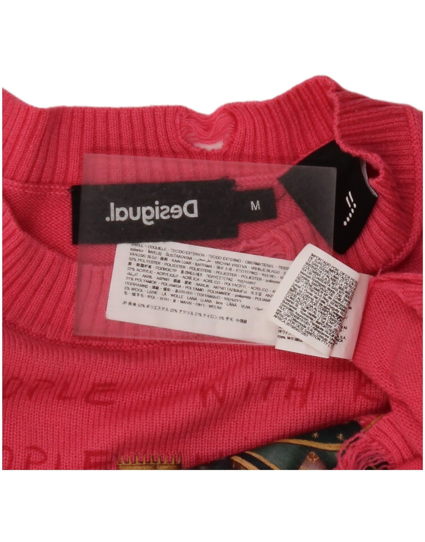 DESIGUAL Womens Crop Graphic Crew Neck Jumper Sweater UK 14 Medium Pink