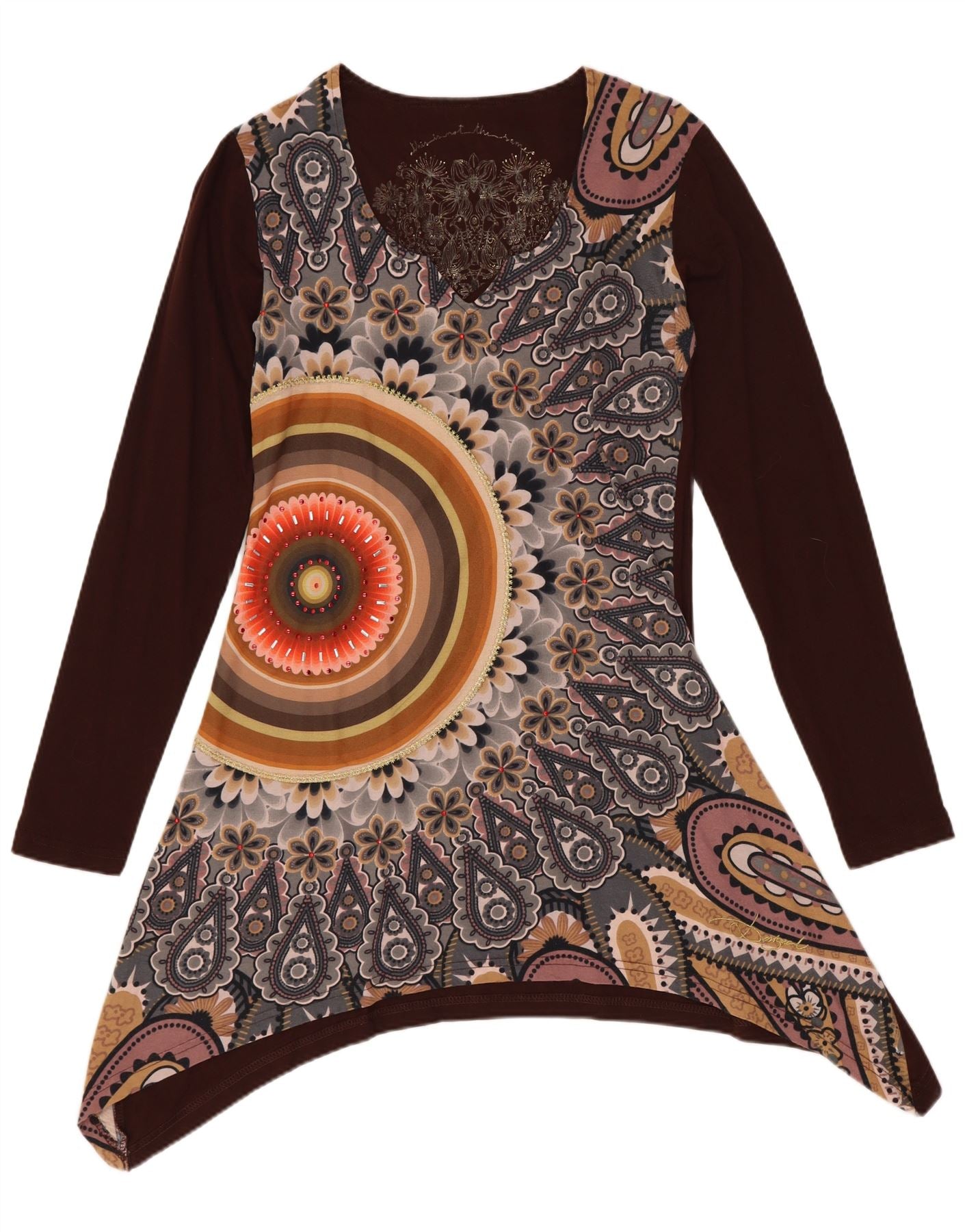 DESIGUAL Womens Graphic Asymmetric Tunic Dress UK 10 Small Brown Floral