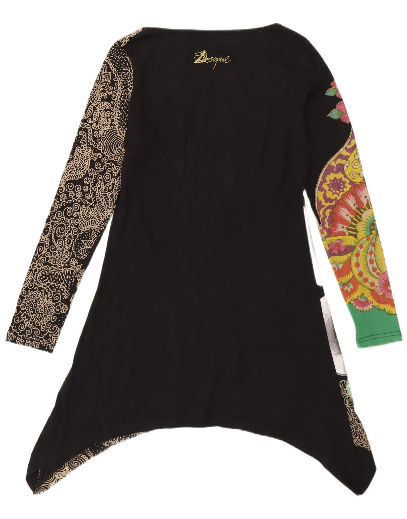 Desigual Womens Graphic Asymmetric Tunic Top UK 10 Small Black Floral