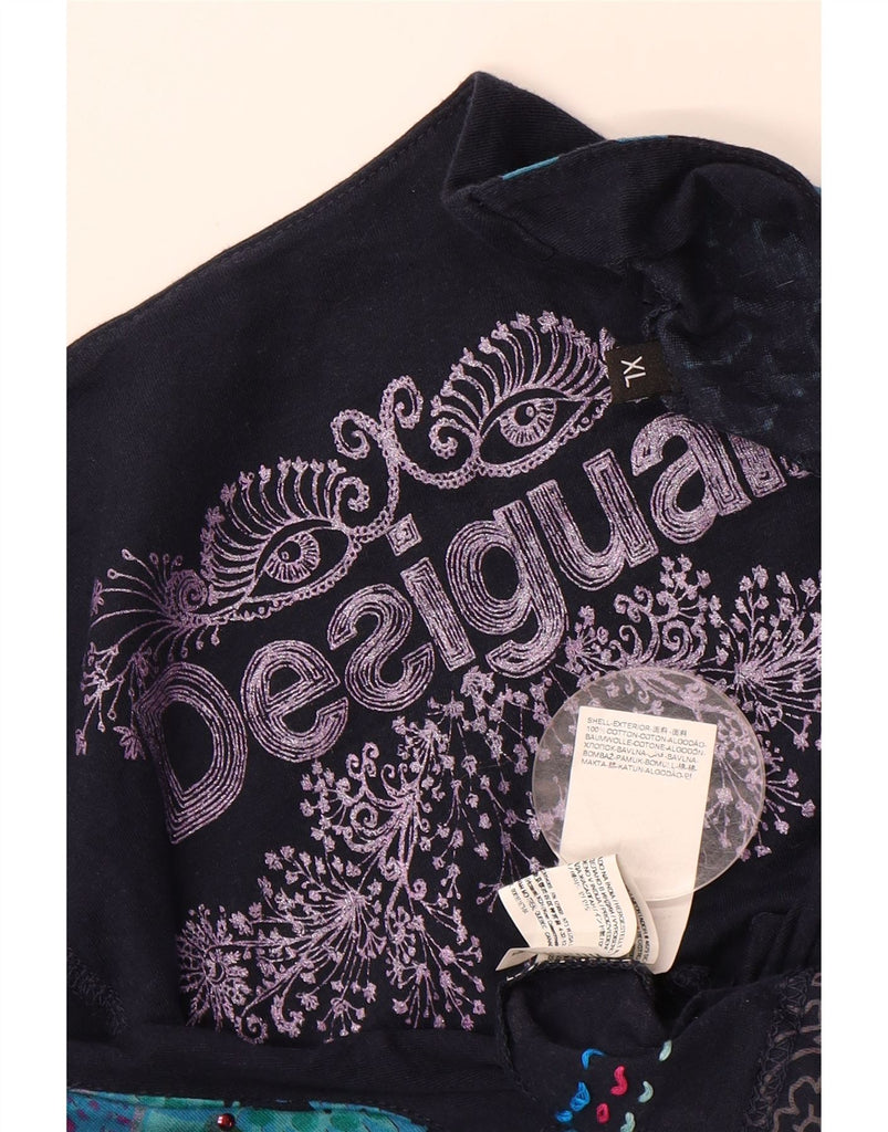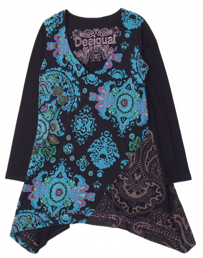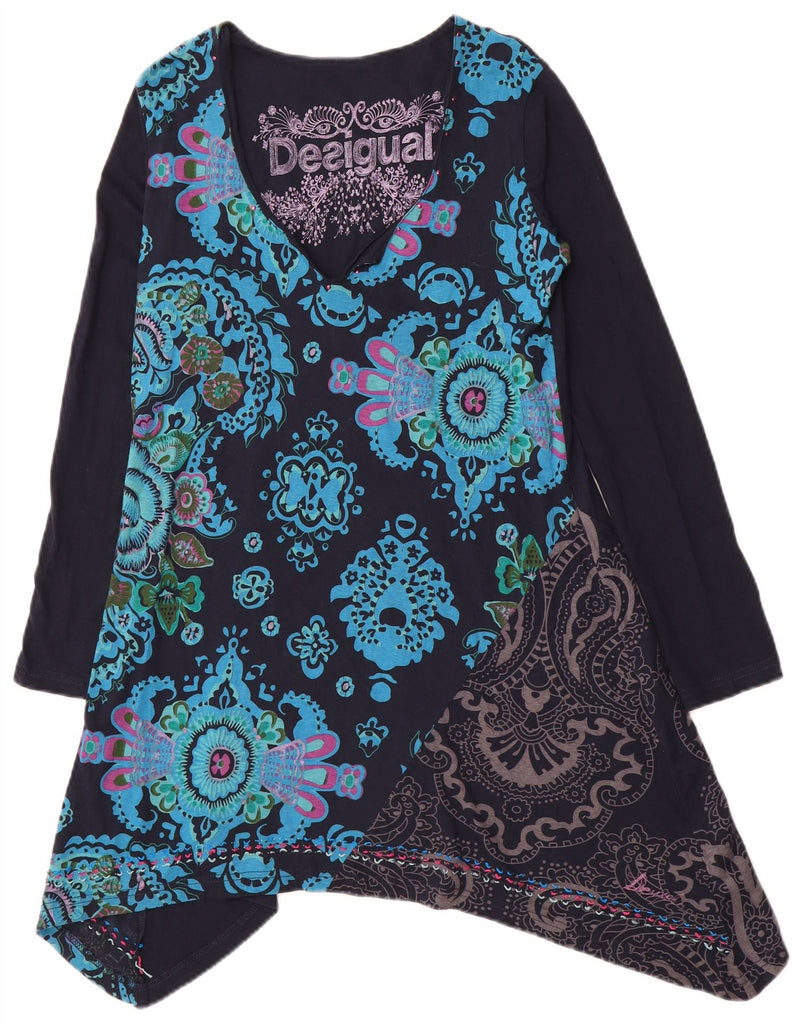 DESIGUAL Womens Graphic Asymmetrical Dress UK 18 XL Navy Blue Floral