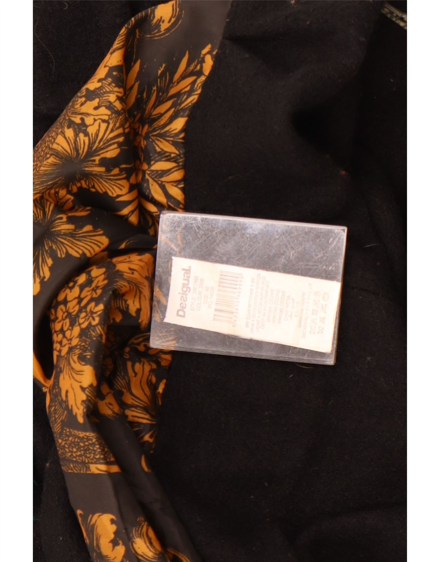 Desigual Womens Graphic Double Breasted Coat EU 40 Medium Black Floral