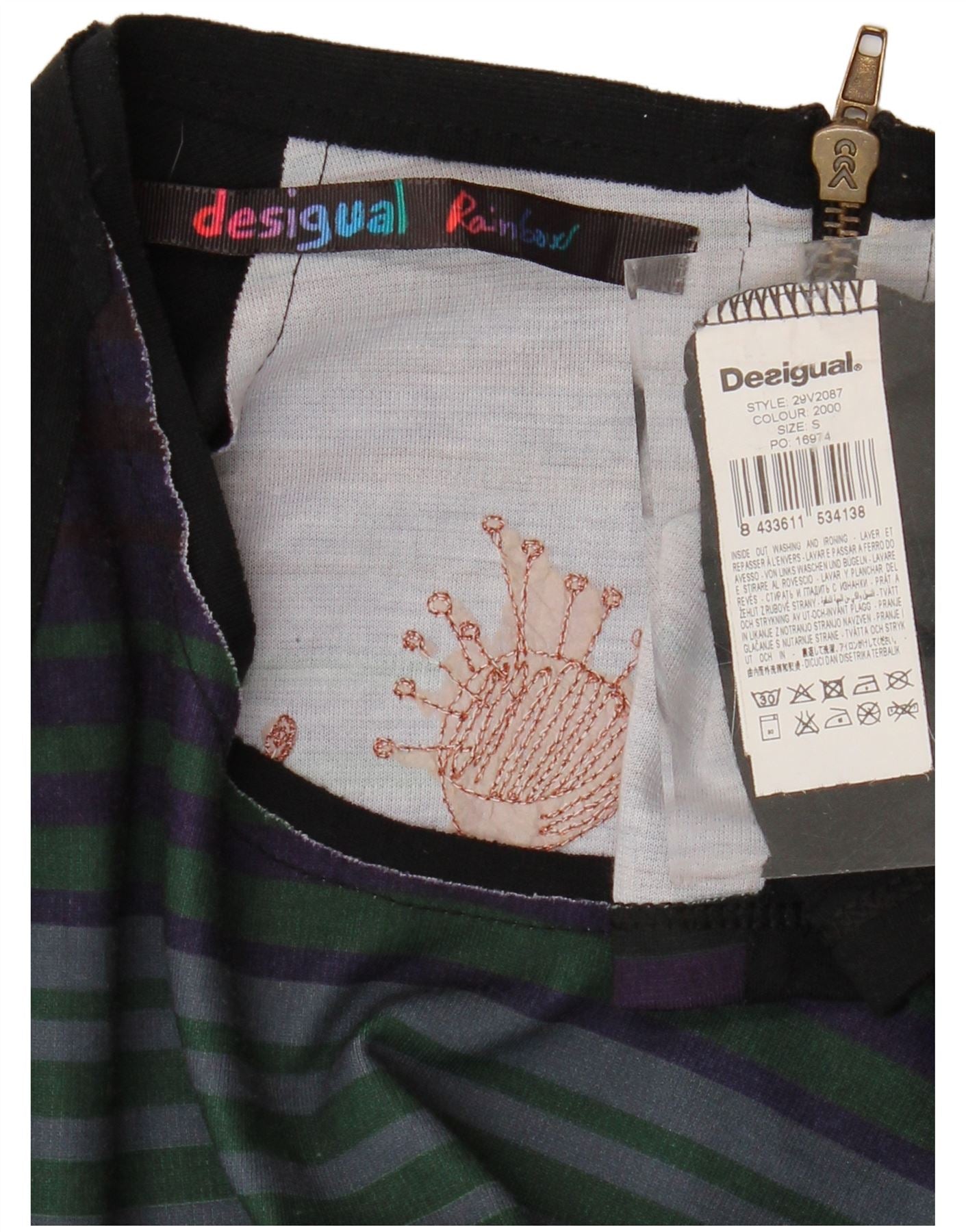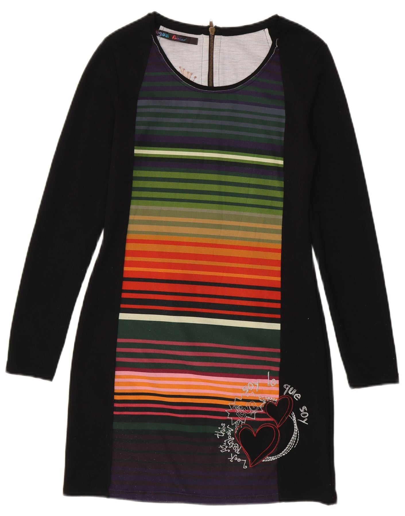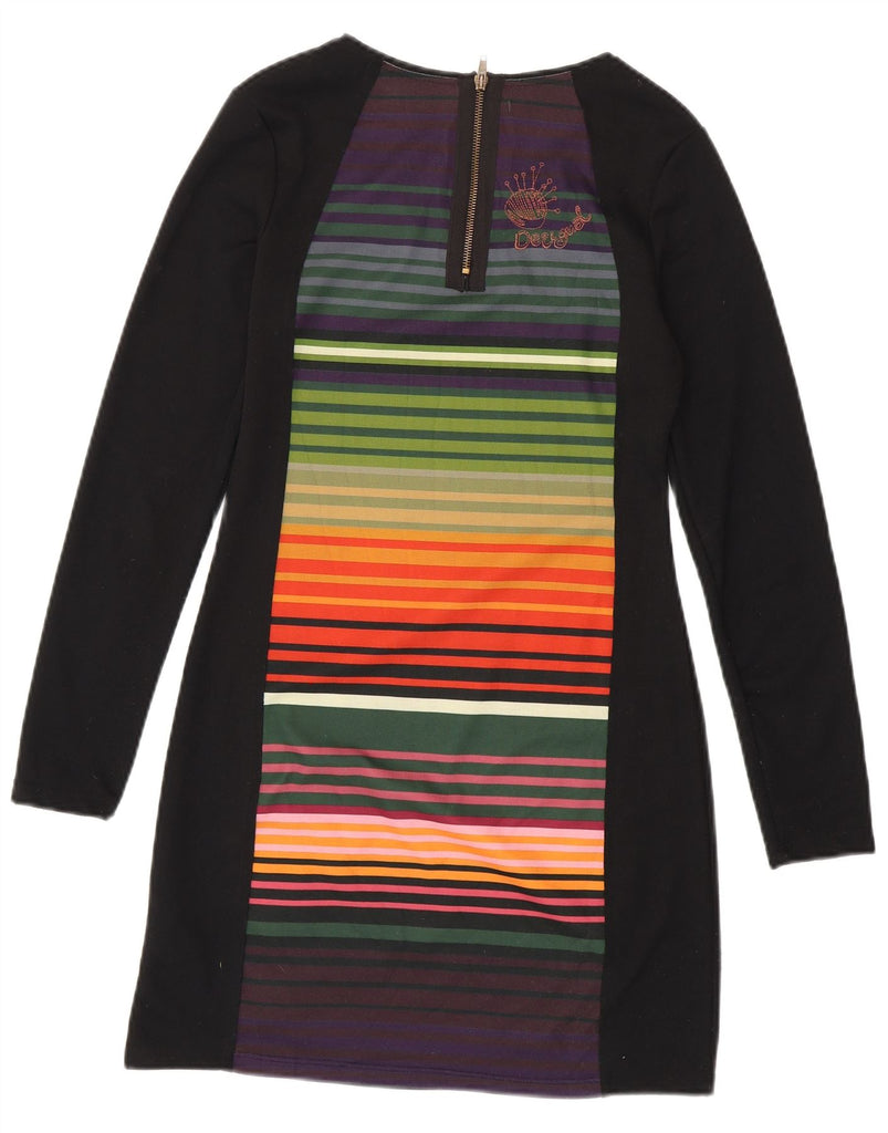 DESIGUAL Womens Graphic Long Sleeve Sheath Dress UK 10 Small Black Striped